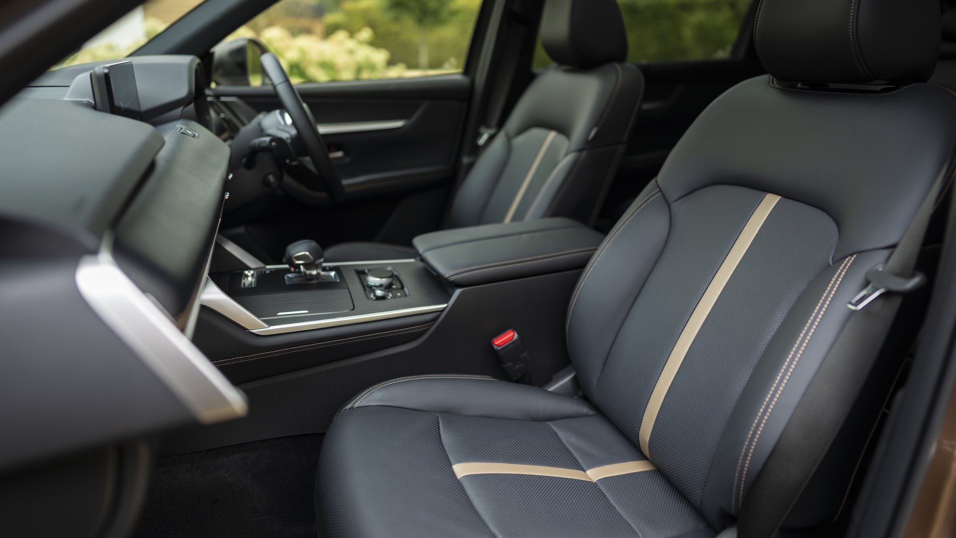 Perhaps more importantly for a family car, the CX-80 is really spacious inside. The first two rows have loads of headroom and legroom, and you can swap the three-seat bench in the middle row for two individual chairs for even more space.