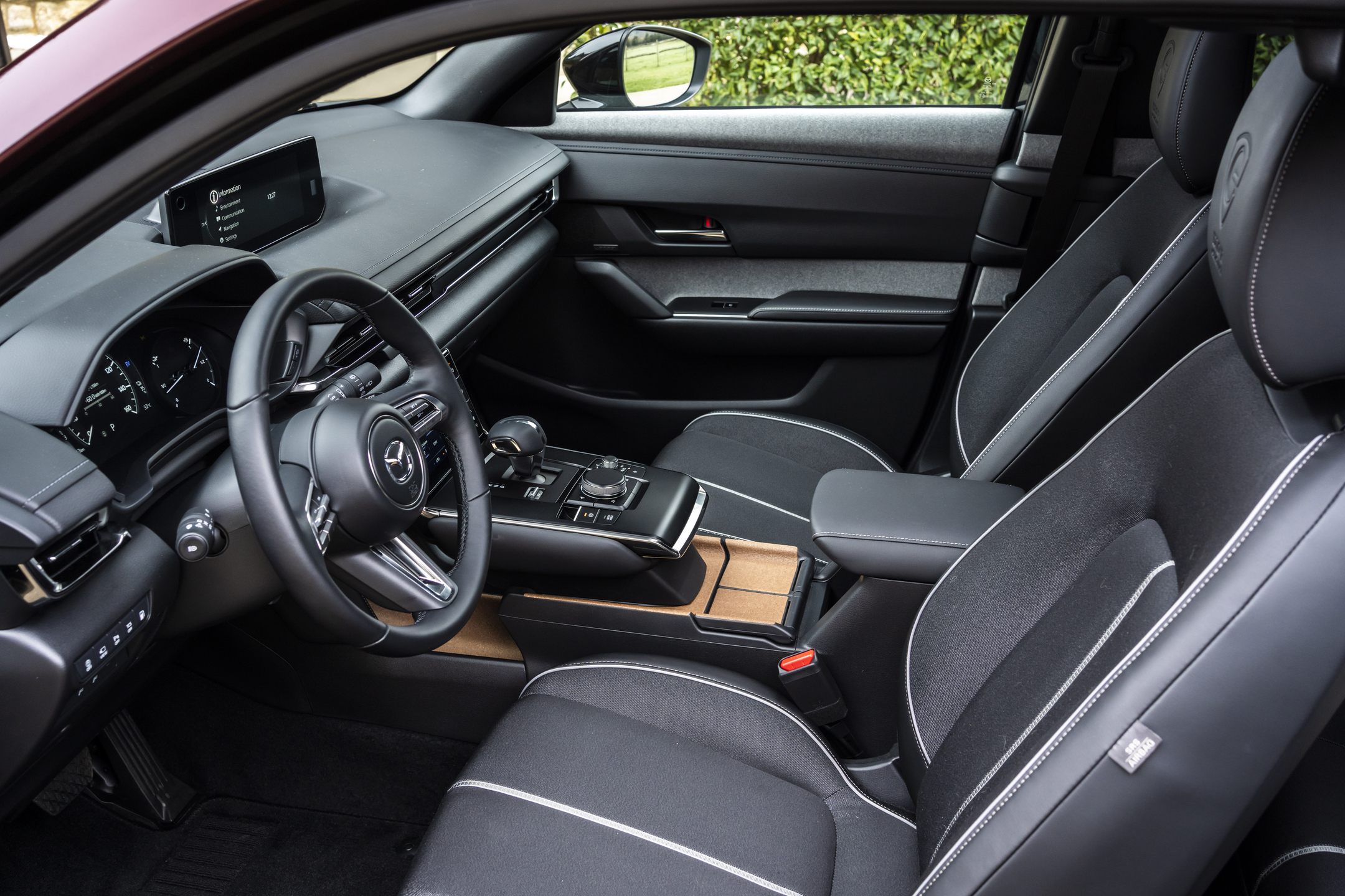 The driving position is excellent — the MX-30 R-EV’s front seats are very comfortable, and there’s plenty of adjustment for taller or shorter drivers.