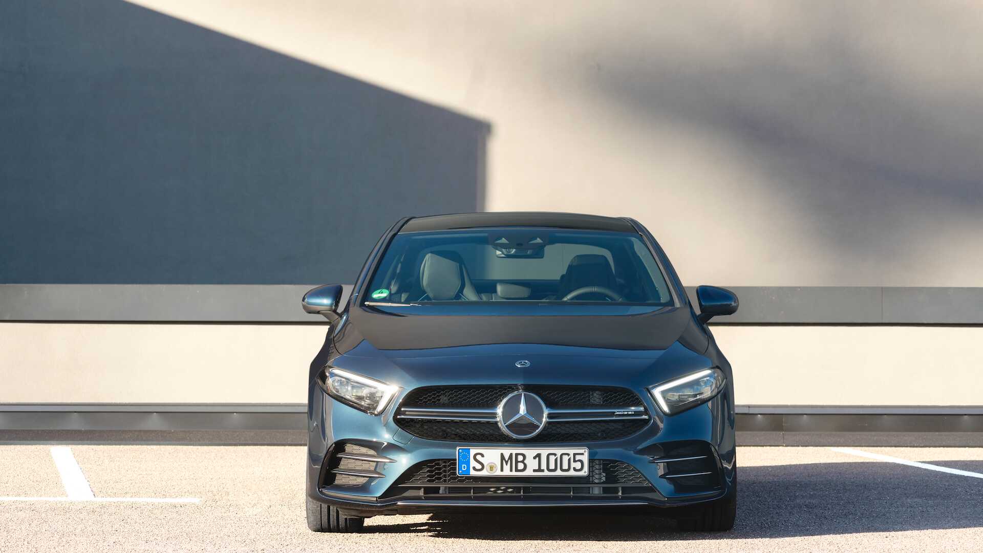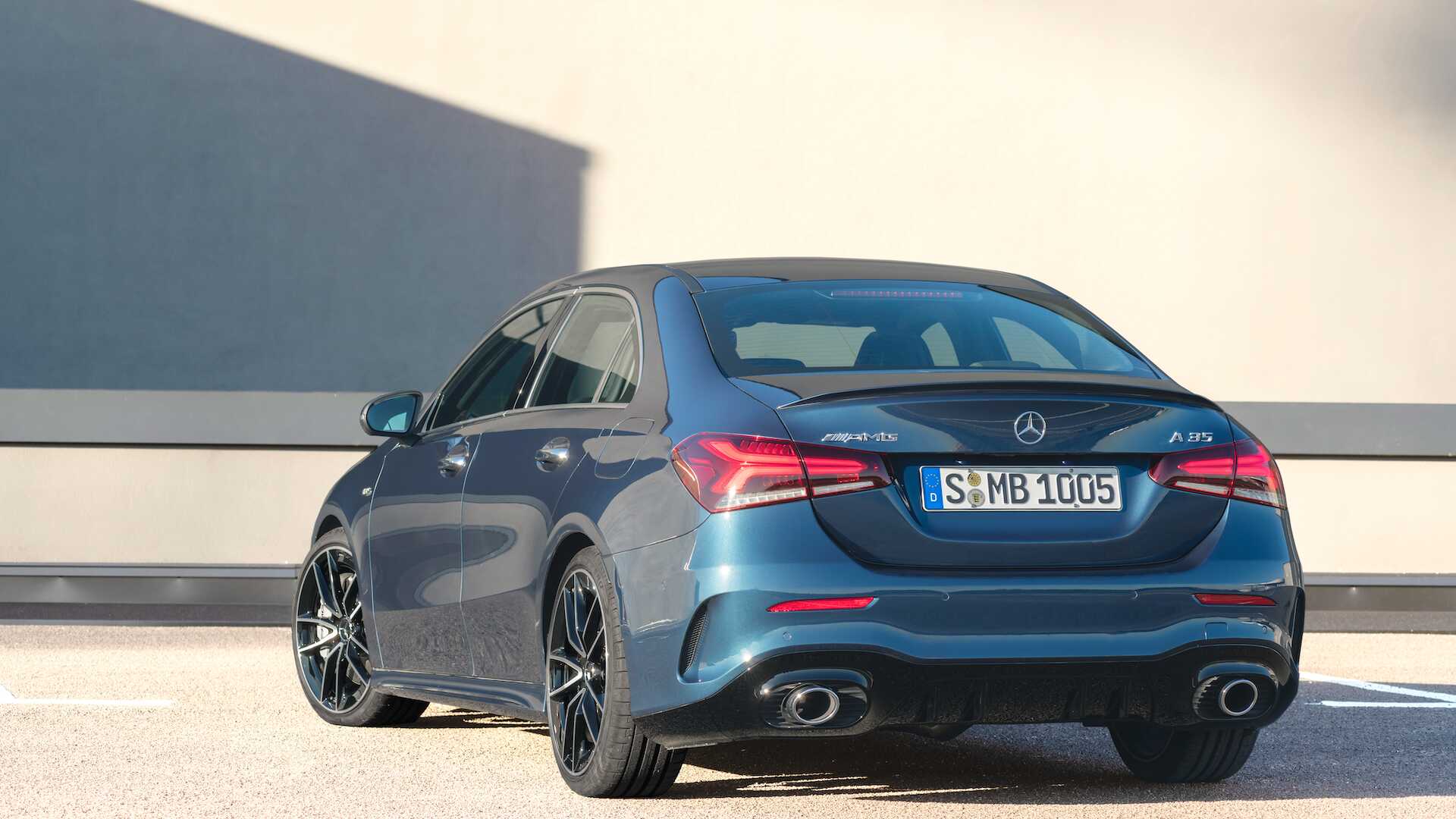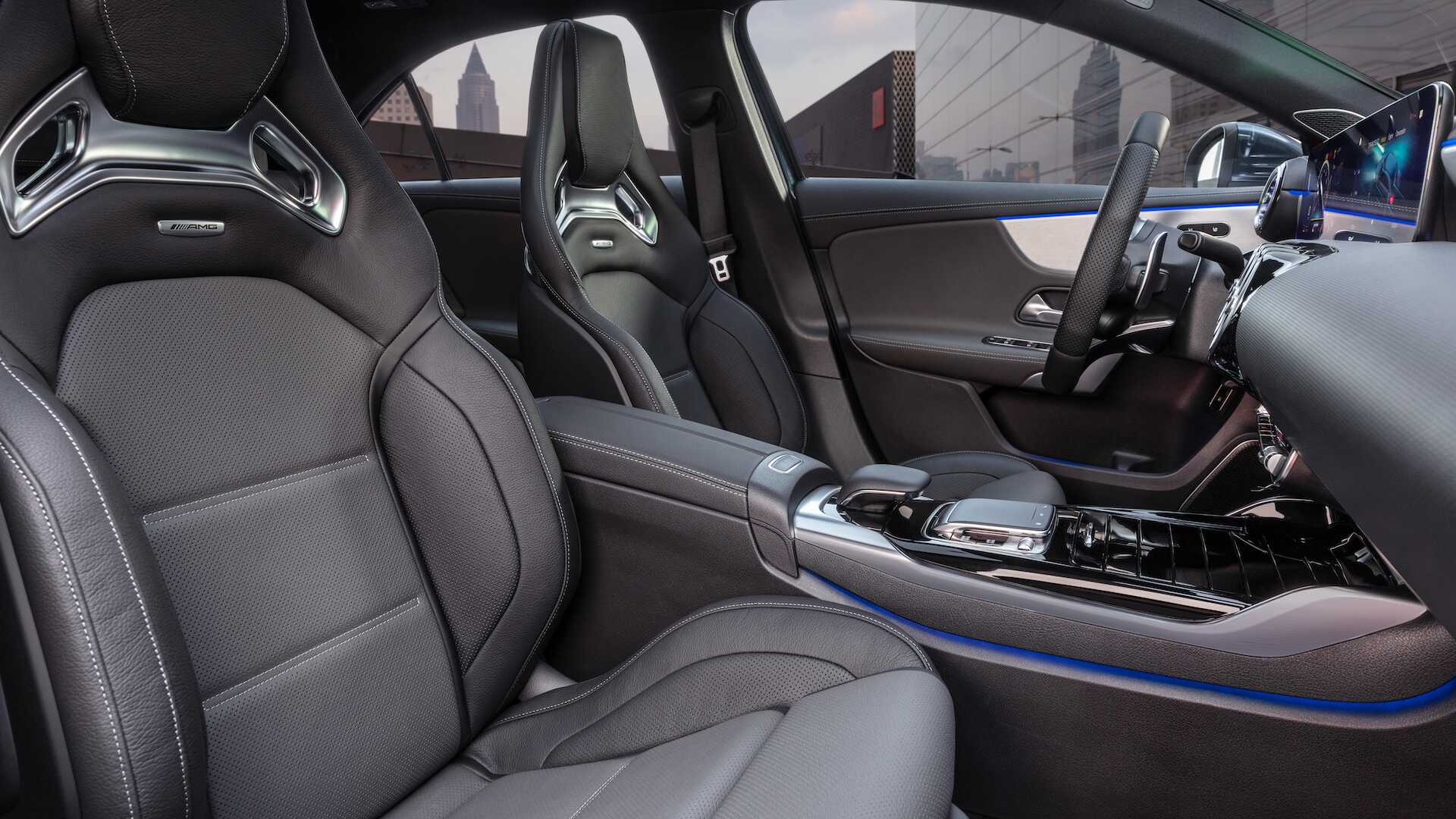 Standard equipment for the AMG A 35 Saloon includes 19-inch alloy wheels, a ‘Night Package’ de-chromed look, an AMG body kit, LED headlights with high beam assist, keyless entry and ignition, twin 10.25-inch digital displays, parking sensors and a rear-view camera, active lane-keeping steering, anti-collision braking, leather trim, an AMG sports steering wheel, two-zone climate control, and 64-colour ambient cabin lighting.