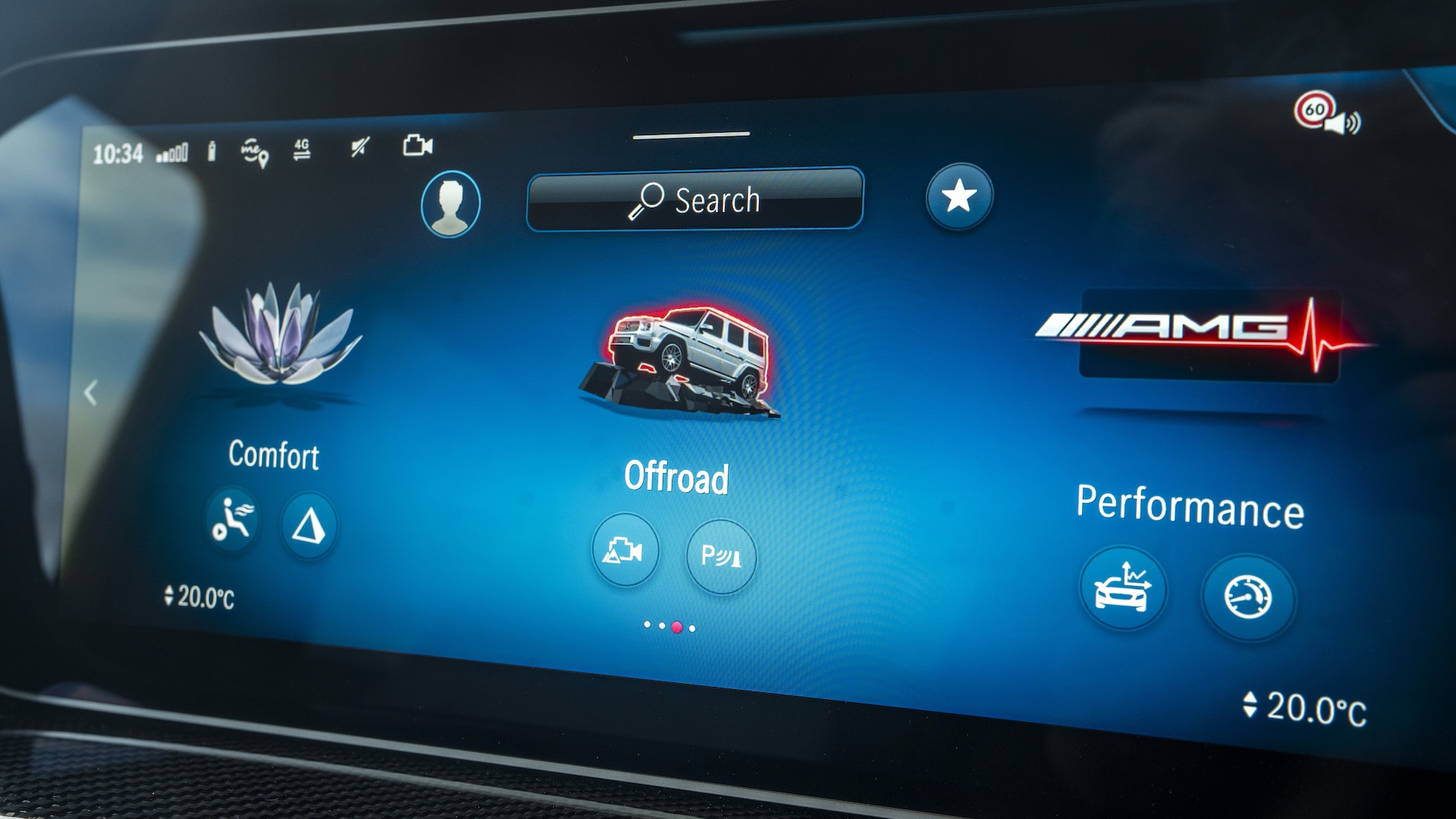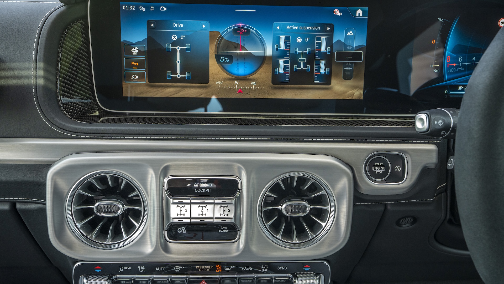 Given the G63’s unashamed retro styling on the outside, you might expect a bit of a retro-pastiche interior too. But instead, it’s very modern and luxurious, using switchgear and tech from Mercedes’ passenger car range.