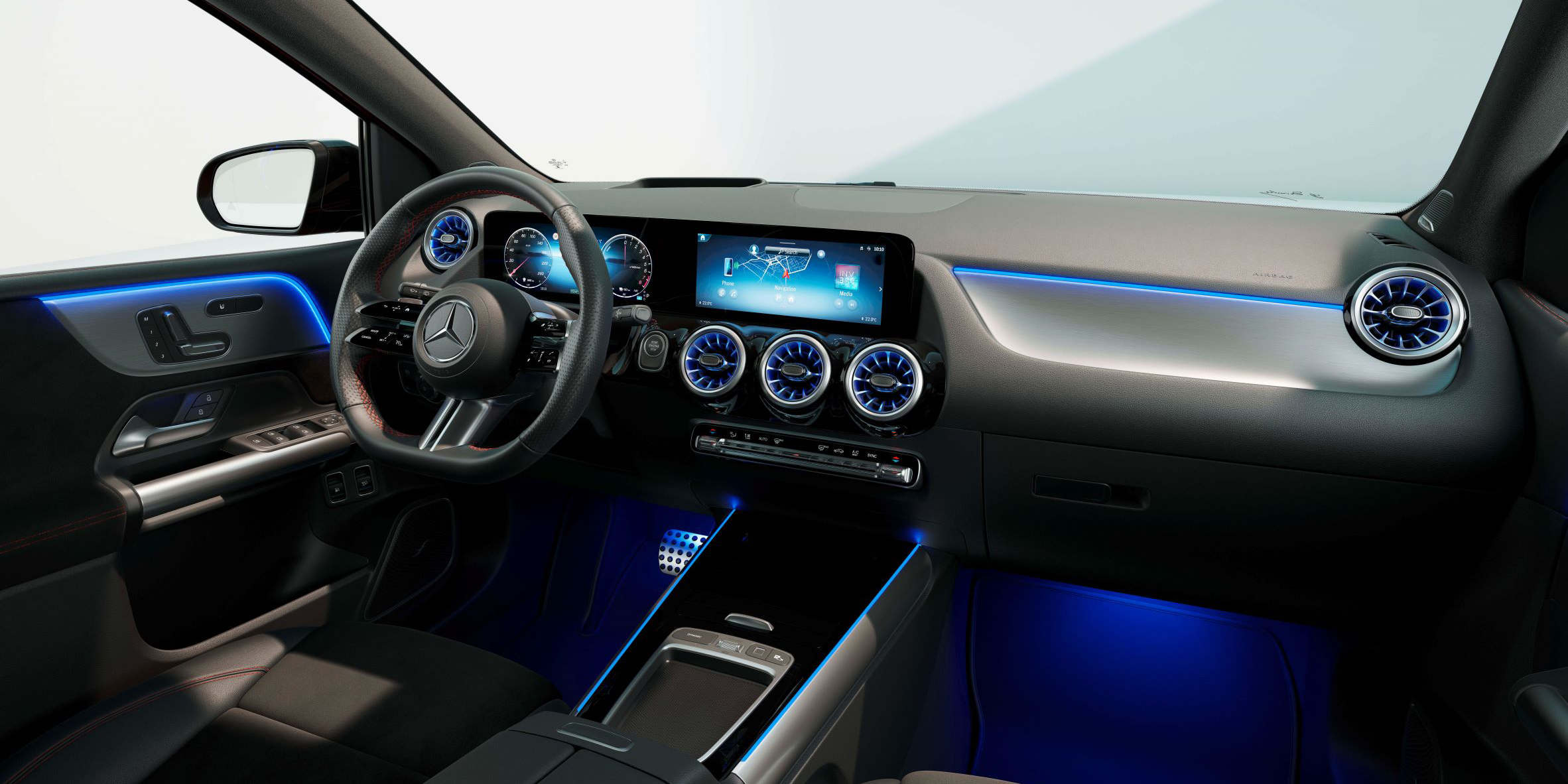 The overall design is clean and minimalist, with a 7.0-inch driver display and 10.3-inch infotainment screen standard on the base trim. All other B-Class trims get a 10.3-inch driver display, while the top Premium Plus Night Edition also gets a panoramic glass sunroof as standard.