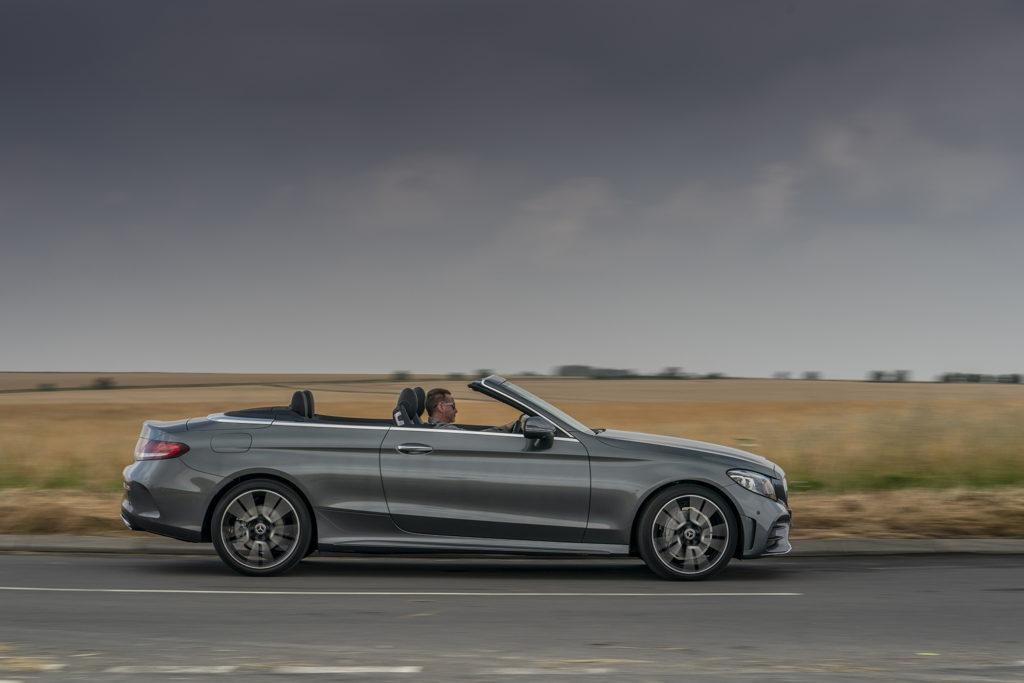 Speaking of motorways, if you lots of very long drives you’ll be better off with a C220d diesel model. This 194hp engine gives the C-Class Cabriolet enough poke to breeze past slow-moving traffic and it produces little more than a faint hum at 70mph. Mercedes claims it’ll return more than 56mpg, but 50mpg is a more achievable everyday figure.