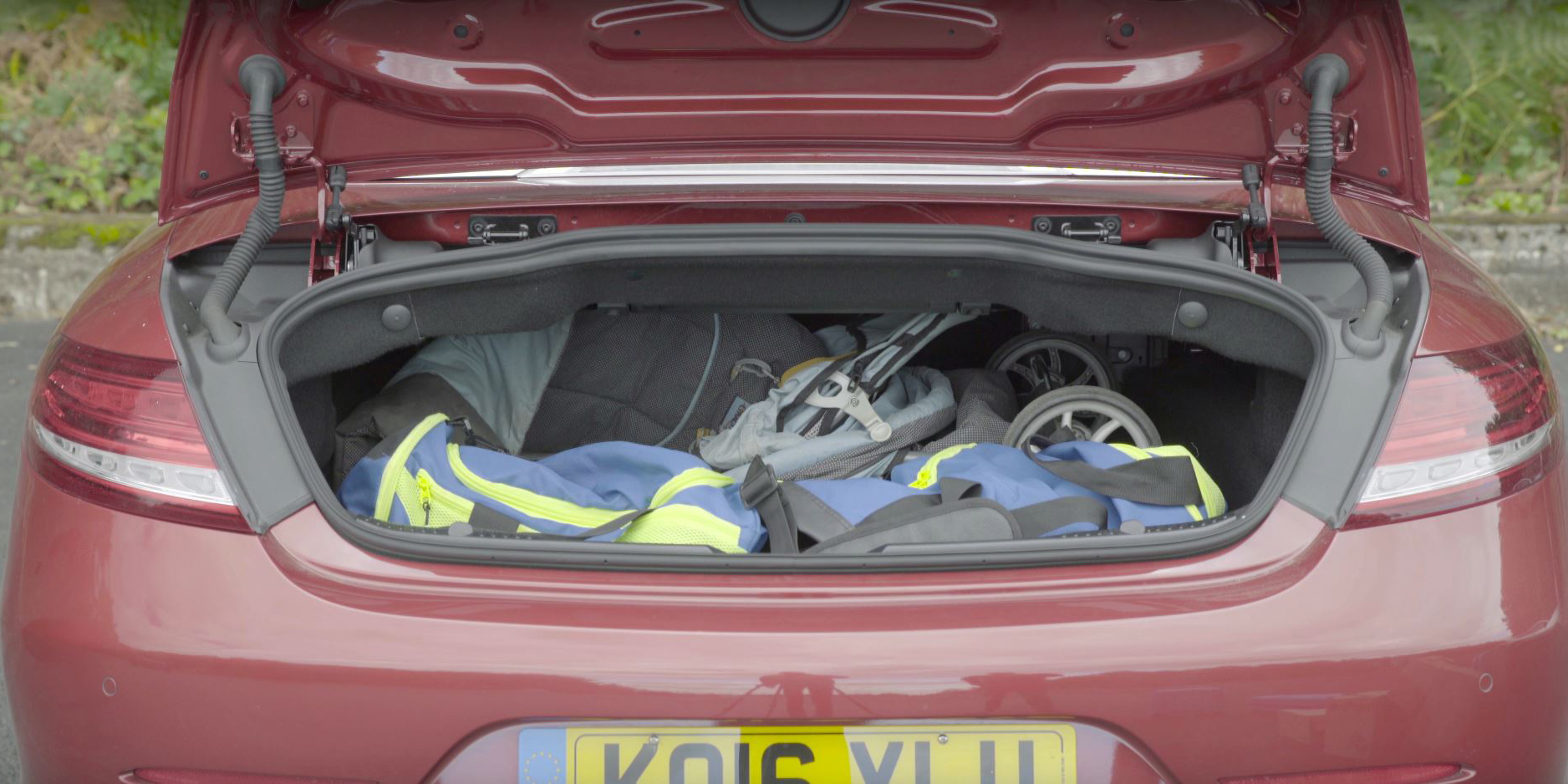 You can also fold the rear seats forward in a two-way (50:50) split to carry long items – an unusual feature for a convertible. With them in place, however, a baby stroller and a few soft bags will fit easily, providing you’re happy to leave the roof up.
