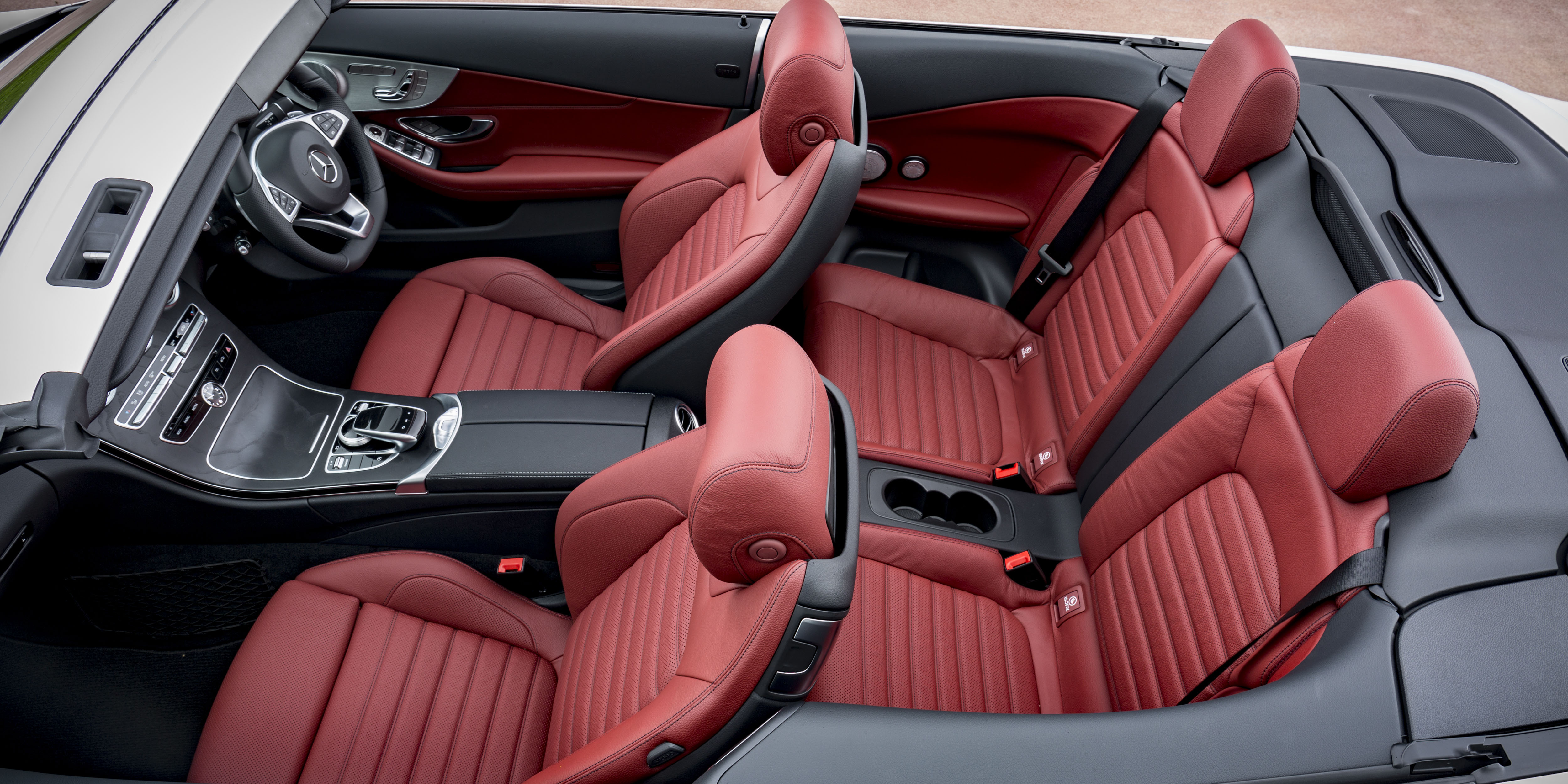 There’s just as much space in the C-Class Convertible as you’ll find in the Coupe version. Both front seats come with height and electric lumbar adjustment as standard so you’ll be able to get comfortable, even if you’re over six-foot tall.
