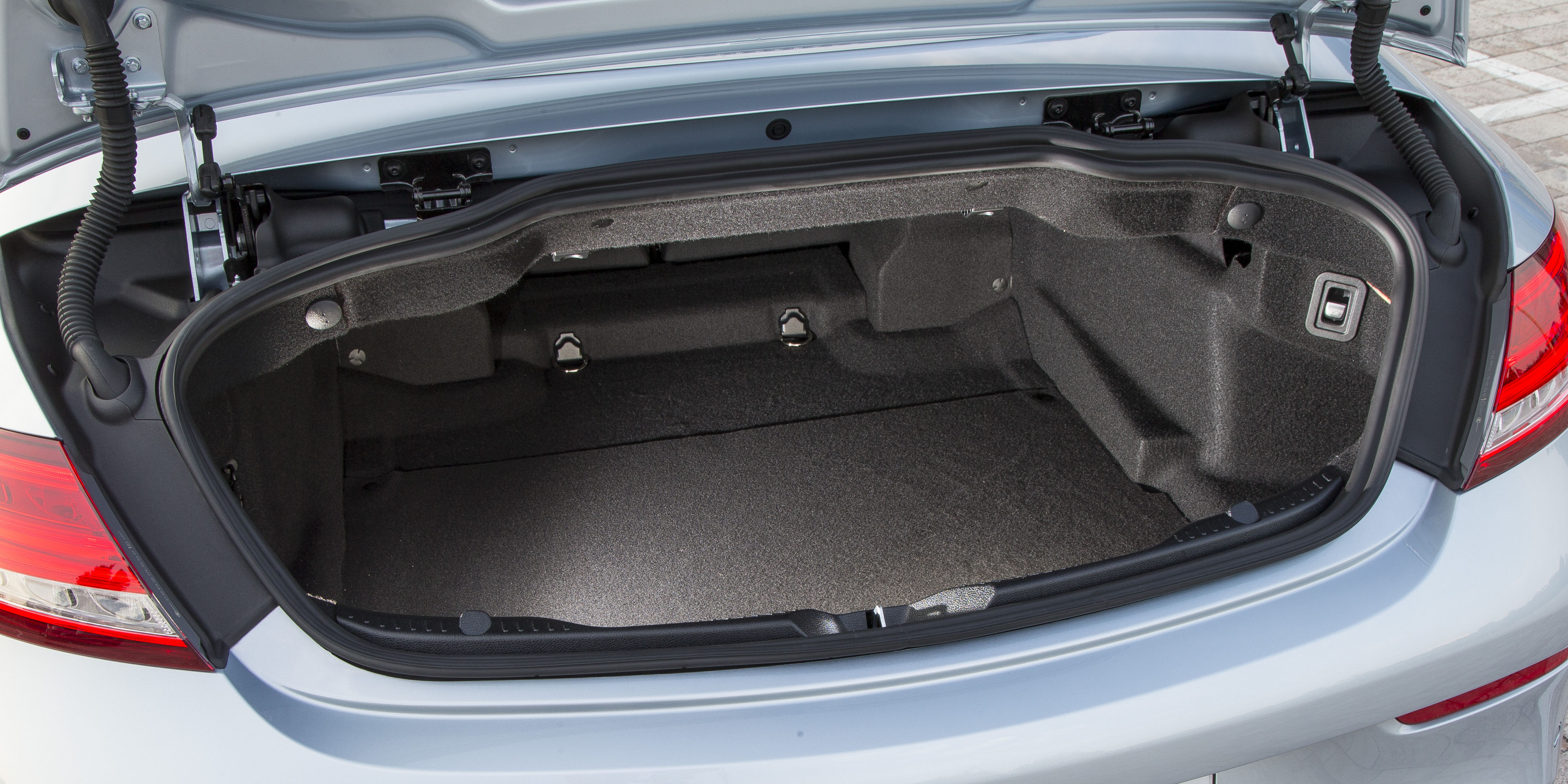 The boot is identical in size to the 370-litre BMW 4 Series Convertible but it’s slightly tighter than the 380-litre loadbay you’ll find in an Audi A5 Cabriolet. There’s enough space for a small suitcase and a few soft bags with the roof folded down, and unlike some convertibles, you can flip the back seats down in a two-way (50:50) split to carry longer items.