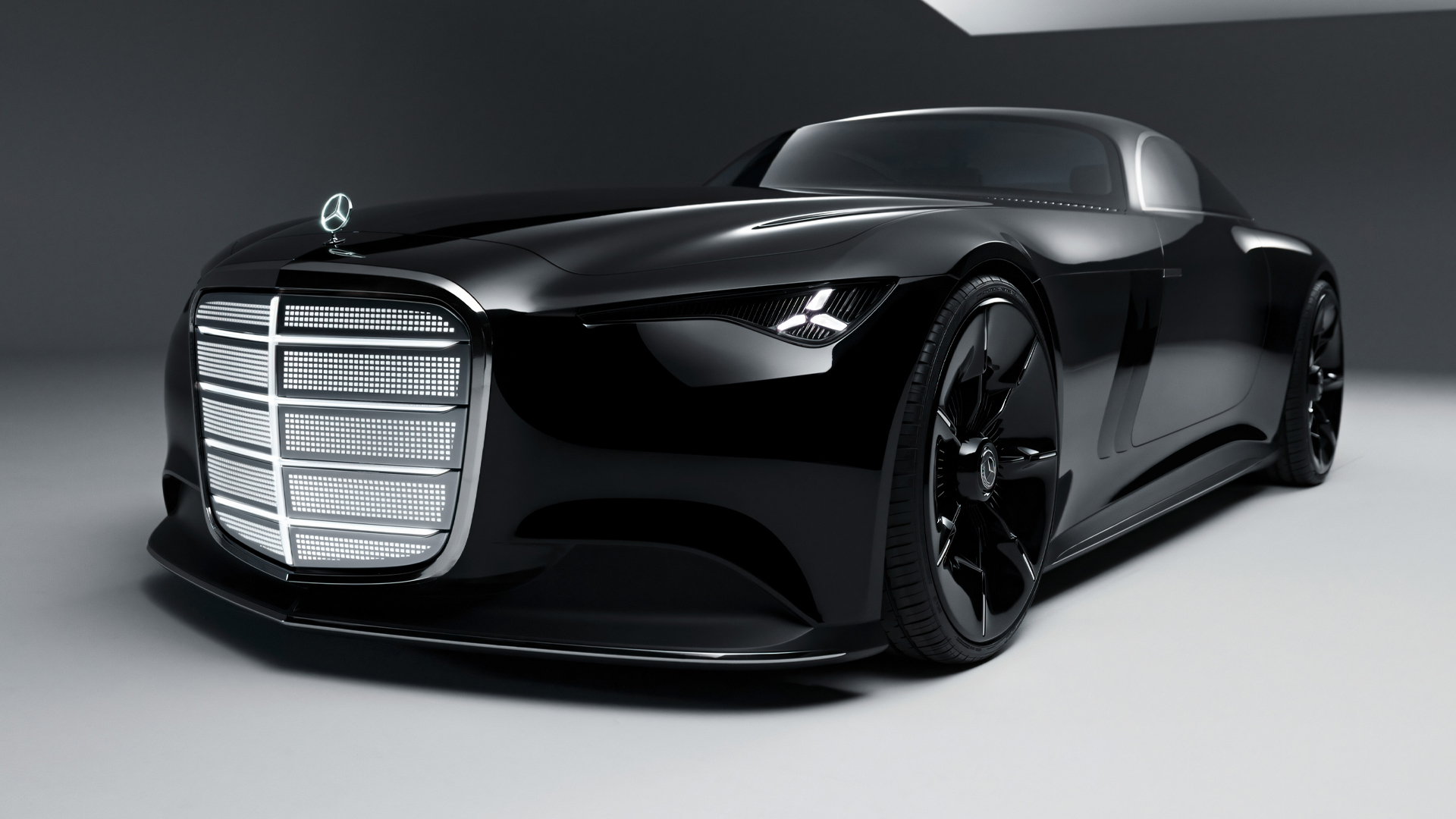 I thought that grille looked slightly out of place on the GLC electric SUV, but here it looks epic. It’s inspired by car design from the 1930s, which is also why it has a bonnet long enough to land a light aircraft on.