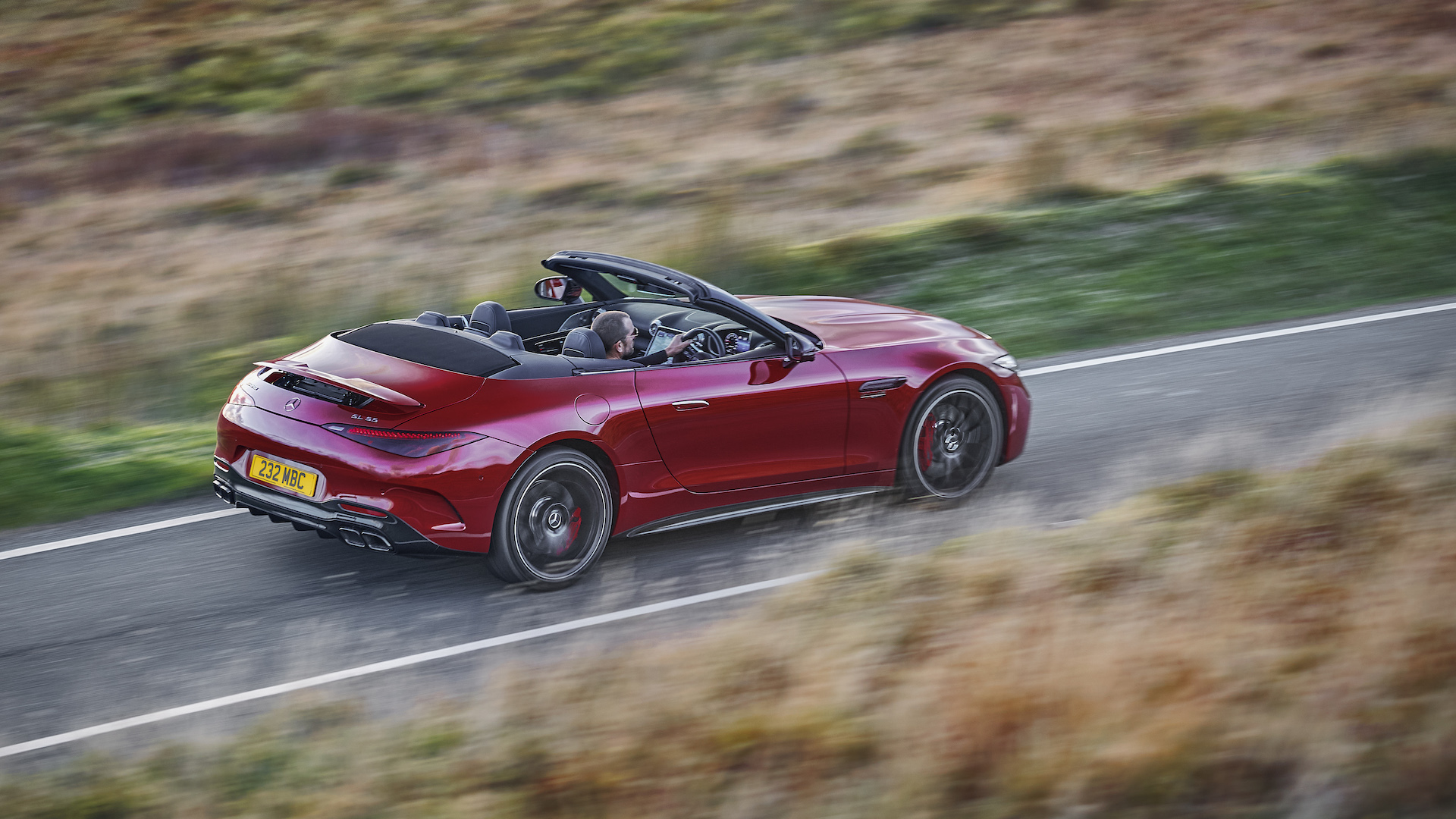 The SL 43 is the most agile model thanks to the small, lighter engine under the bonnet, but it lacks the savage whack of performance you get with the other two, and the engine has a more synthetic sound that’s not quite as pleasing on the ear.