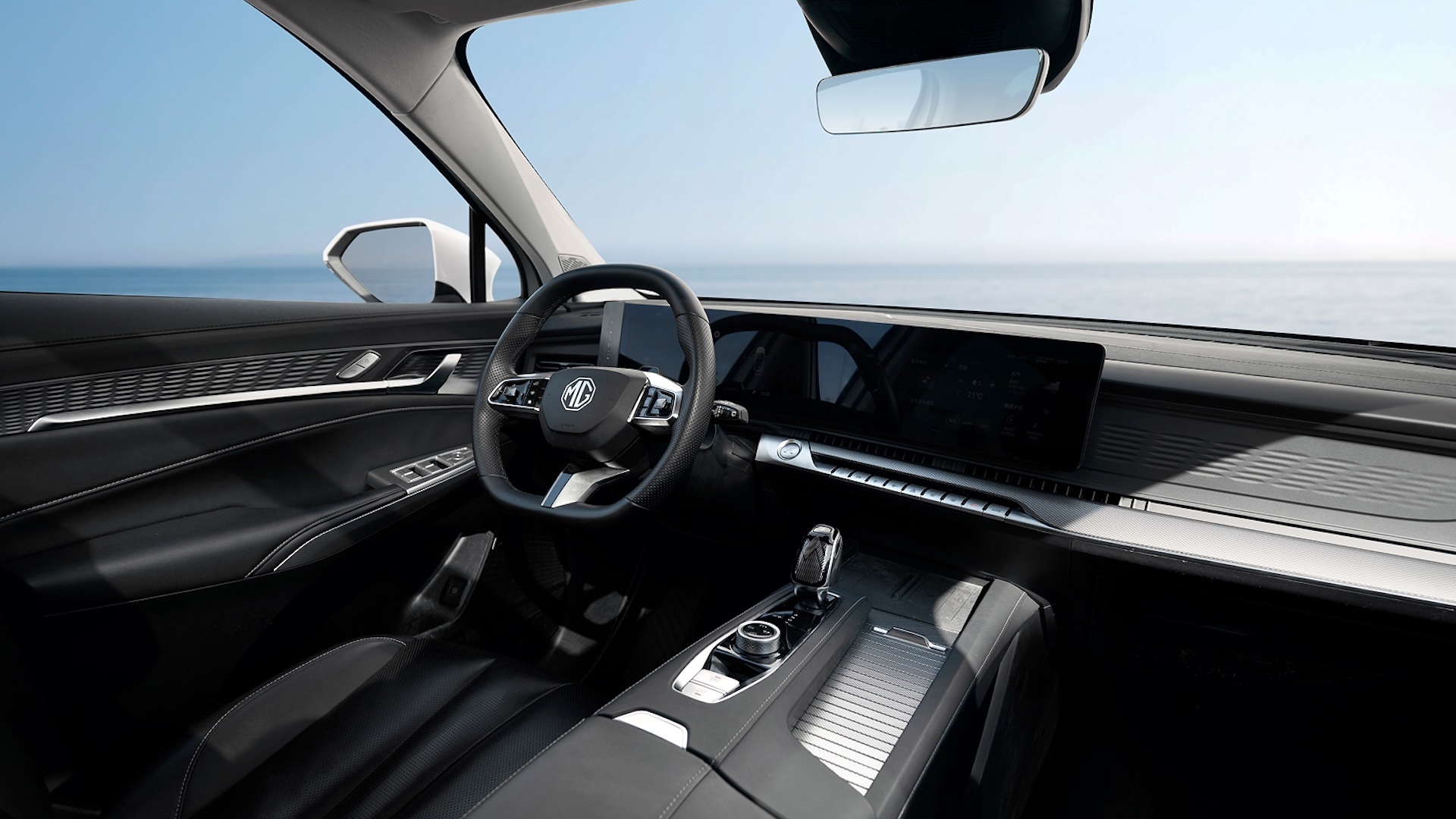 The sides and rear end are fairly generic, with only a few crisp lines and a U-shaped lightbar to draw any attention to the otherwise plain-looking MG. It’s not an ugly car, but there’s a hint of Cheshire Cat about the S9 PHEV. We’ll reserve judgement until we see it in person.