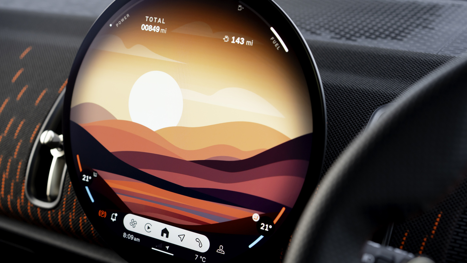 The dominating feature of the Mini Countryman’s interior is the infotainment display. It’s the first fully circular OLED screen fitted to a car, and it measures 9.4-inches in diameter.