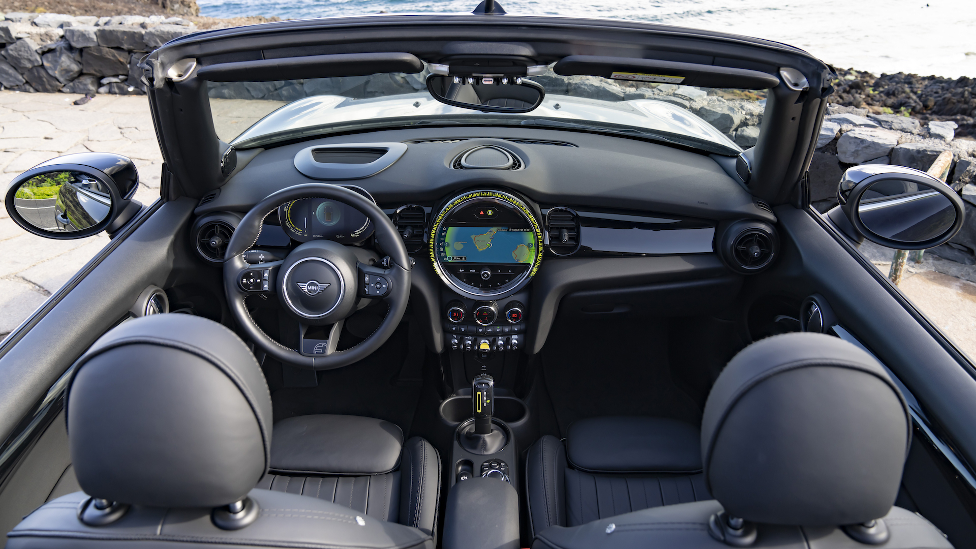 Standard kit includes 17-inch alloys in a design that’s unique to this edition, along with heated seats, a multifunction heated steering wheel, and a head-up display. Active cruise control should help make long journeys more relaxing, aside from the urgent need to find somewhere to charge. Nipping around town or enjoying country roads will play more to the Mini Electric Convertible’s strengths.