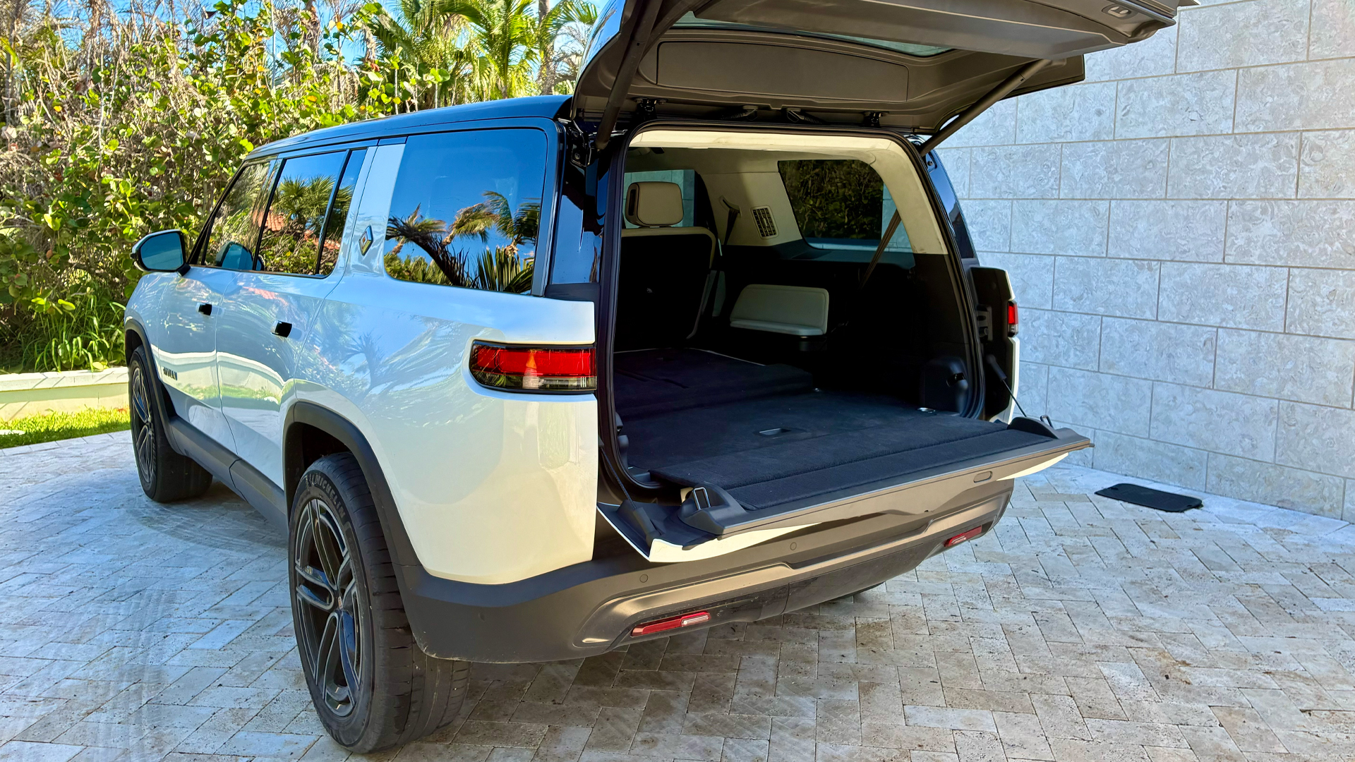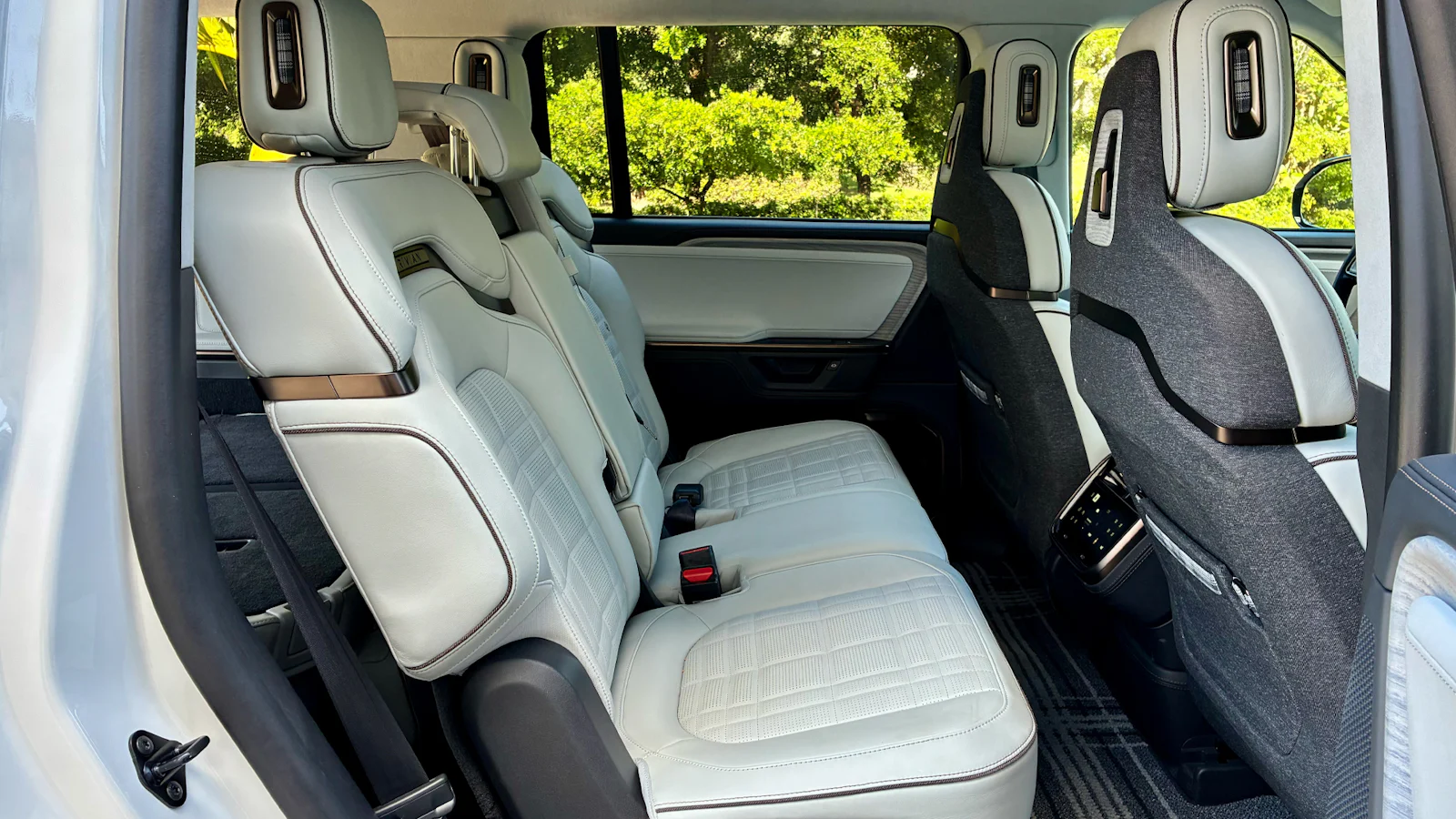 And because it’s so huge, the R1S offers a superb amount of space for the front passengers, three adults across the middle row and another two in the back – all with great access in and out. We’ve also tried the pick-up truck version of the R1, the five-seat R1T, and found the R1S less cramped in the back.