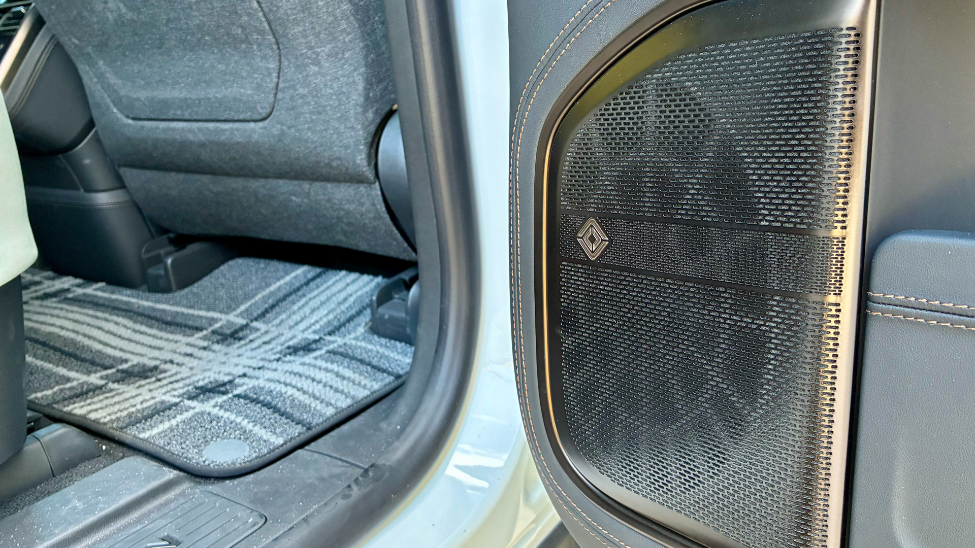 Inside, Rivian has done a fantastic job on the design and build quality of the interiors. Mine was wearing a light interior colour which really lifted things, helped by numerous fantastic design details on the dash, doors, seats and even the floor – I’m partial to a tartan mat.