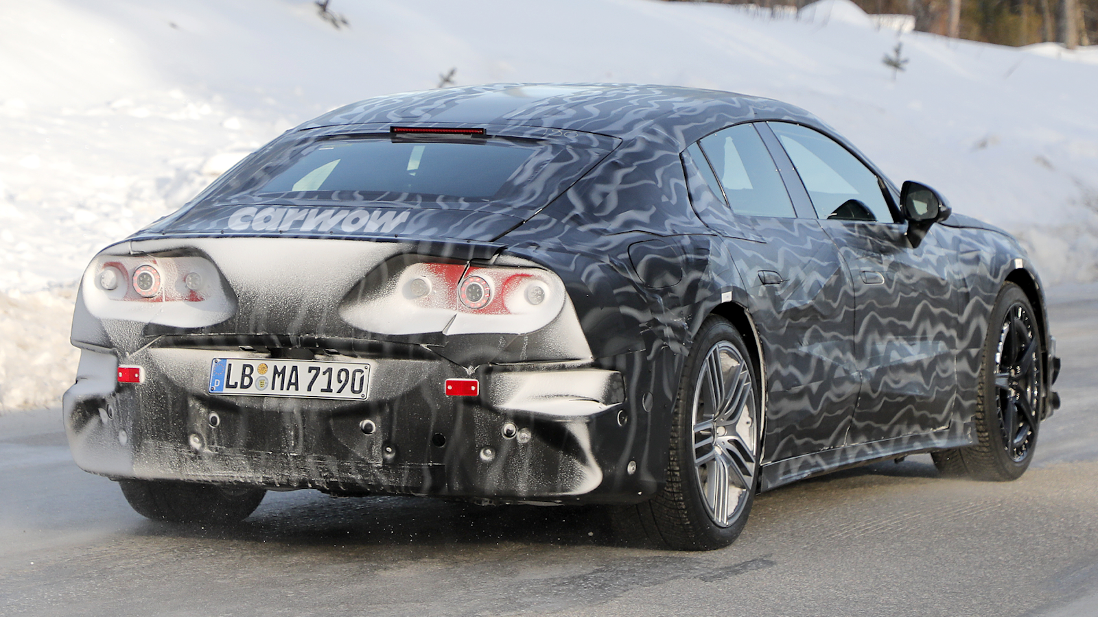These camouflaged teasers are your first and only look at the new Mercedes-AMG GT 4-Door, and it looks as though it’ll have a similar silhouette to the current car.