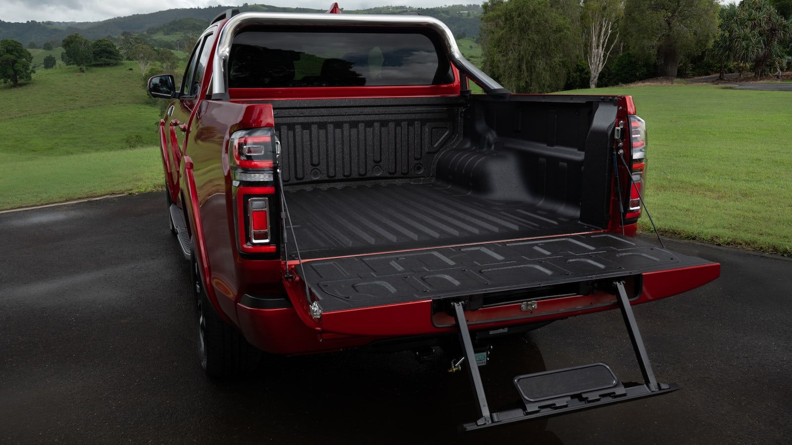 A payload of over a tonne and towing capacity of 3.5 tonnes is on par with those alternatives and what you’d expect from the class. Nice touches include gas struts for the tailgate and a foldout step with 150kg capacity.