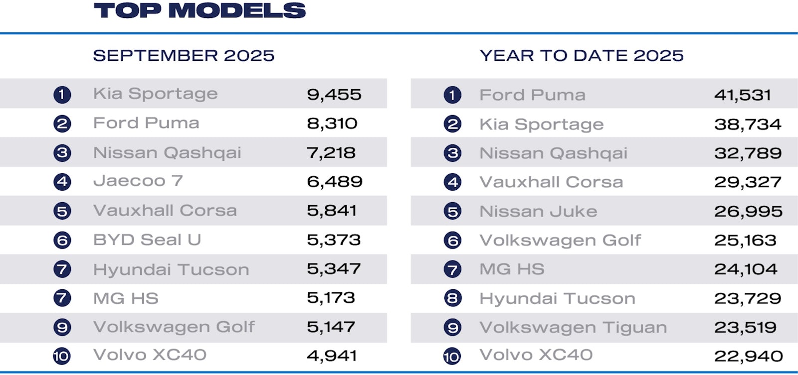Here are the top models sold in September and a year to date, according to the latest SMMT figures: