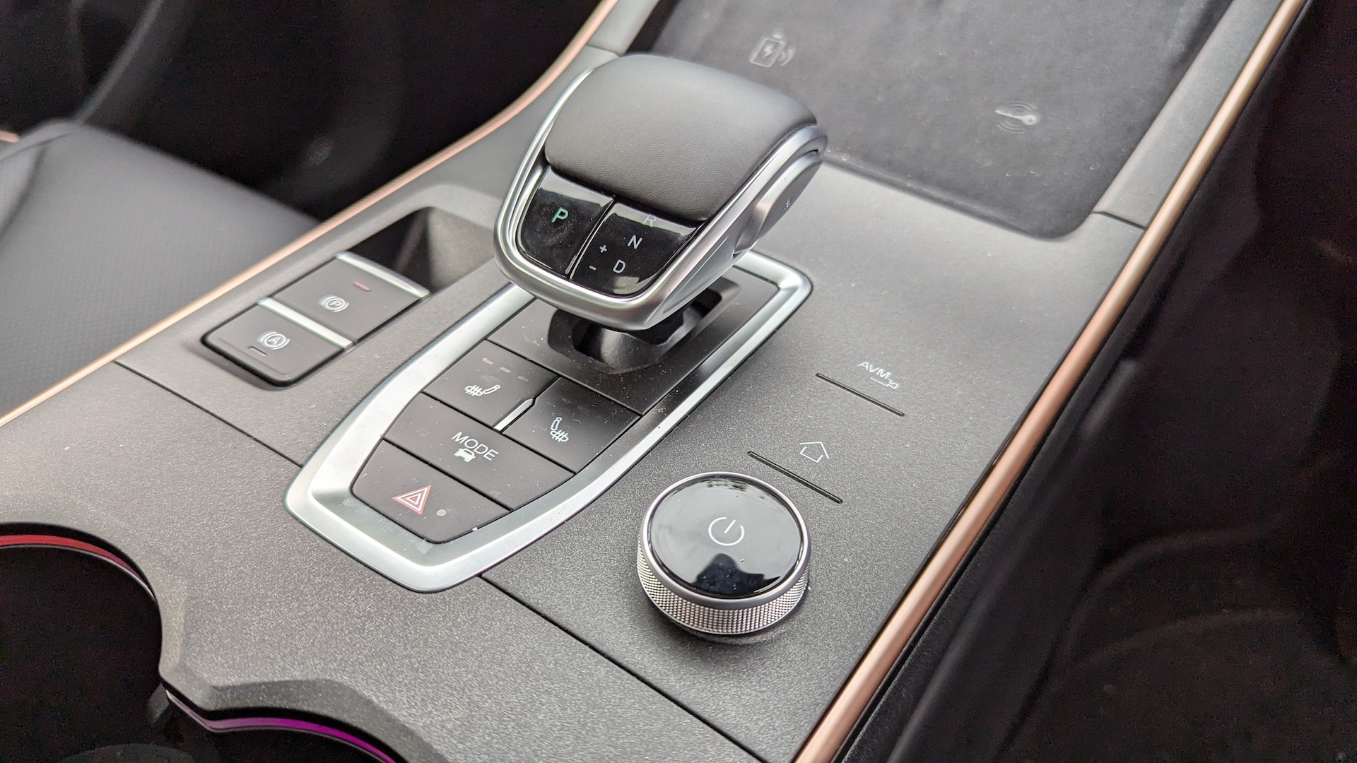 The Omoda’s interior looks very premium when you first step in. The dashboard has two 10.3-inch screens across the top for driver information and infotainment, set under a single housing a lot like a Mercedes. The phone charging pads look very like what you get on a Tesla Model 3, the climate controls look straight out of a Nissan Ariya and the gear selector has Audi written all over it. Not literally. So, like the exterior, it’s a bit of pastiche of lots of other cars.