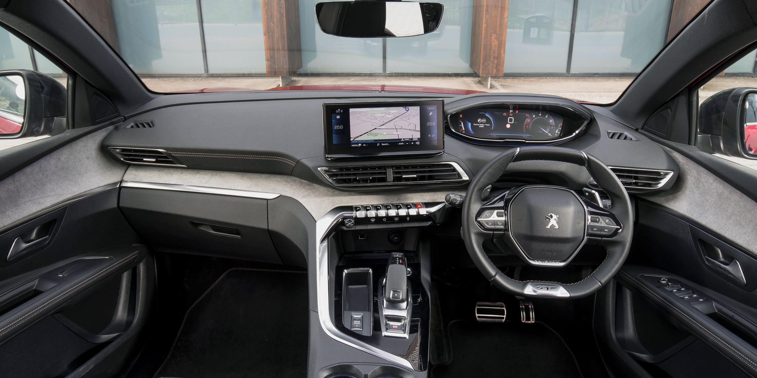 The Peugeot 5008’s cockpit looks like the inside of a fighter jet compared to most alternatives, but the small diameter steering wheel can block the driver’s digital display