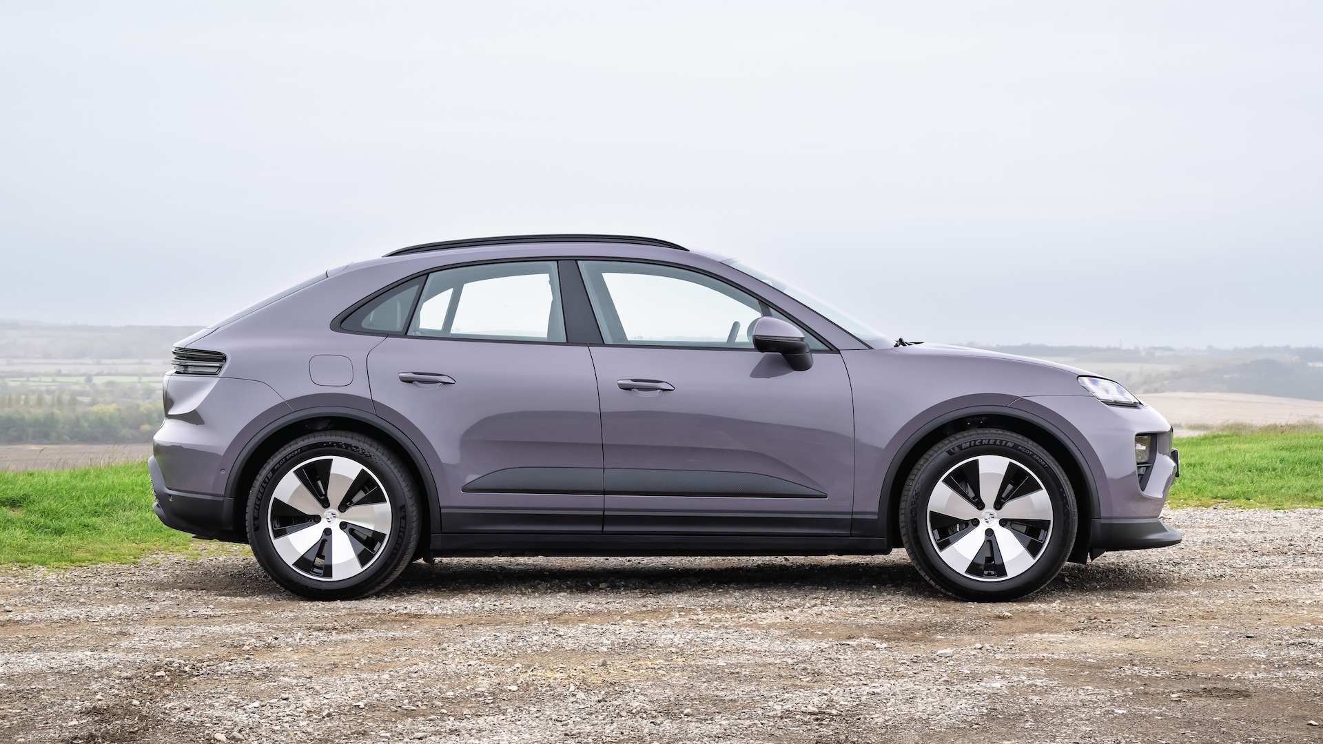 This is the Porsche Macan Electric, an all-electric SUV that’s usefully practical for everyday life, suitably posh inside, and great fun to drive on a twisty road. It’s the first time the Macan is offered with purely electric power. It’s a bit like Lewis Hamilton – sporty, but environmentally conscious.
