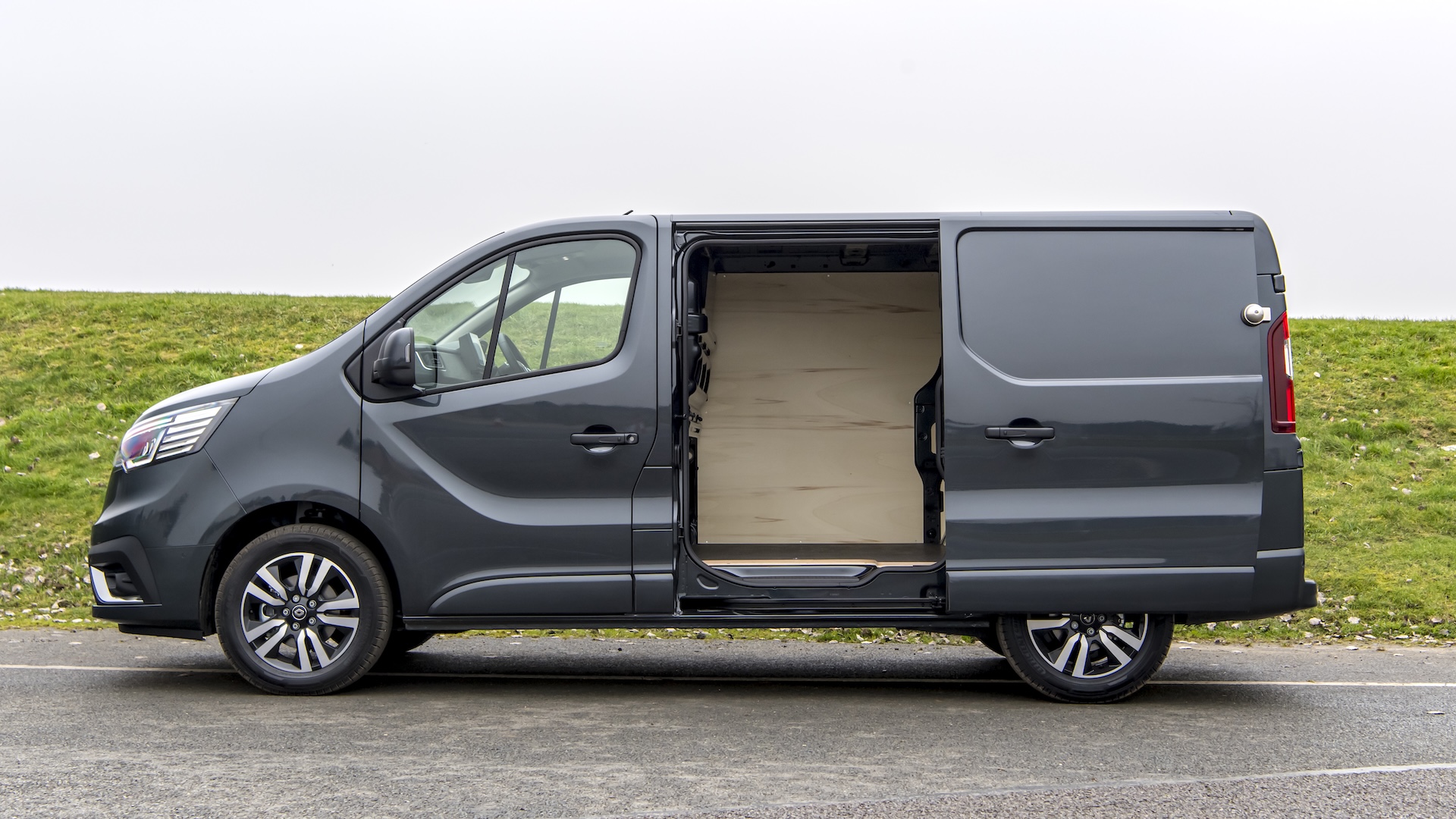 The Trafic’s load area is ready for work. The van is available in two body lengths and, on the shorter model, two roof heights, and all models come with a single sliding door. A second sliding door is an option.