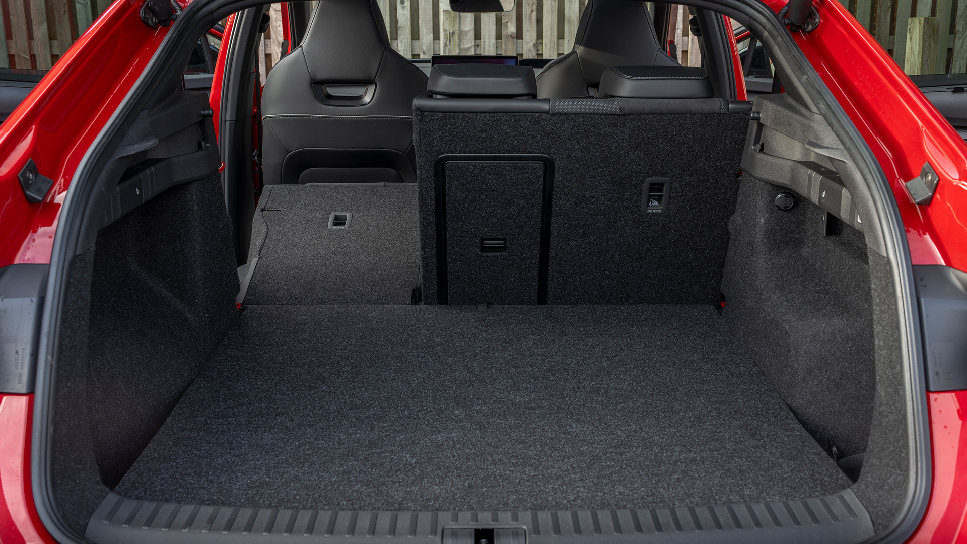 There is a handy under-boot spot for the charging leads or a neat cubby that slots into the wheel arch, which makes up in part for the absence of a front load area, and the boot has a whole raft of bag hooks, a couple of different clips to hold small items in place and four tie-down points. There are also a couple of small compartments to the side.