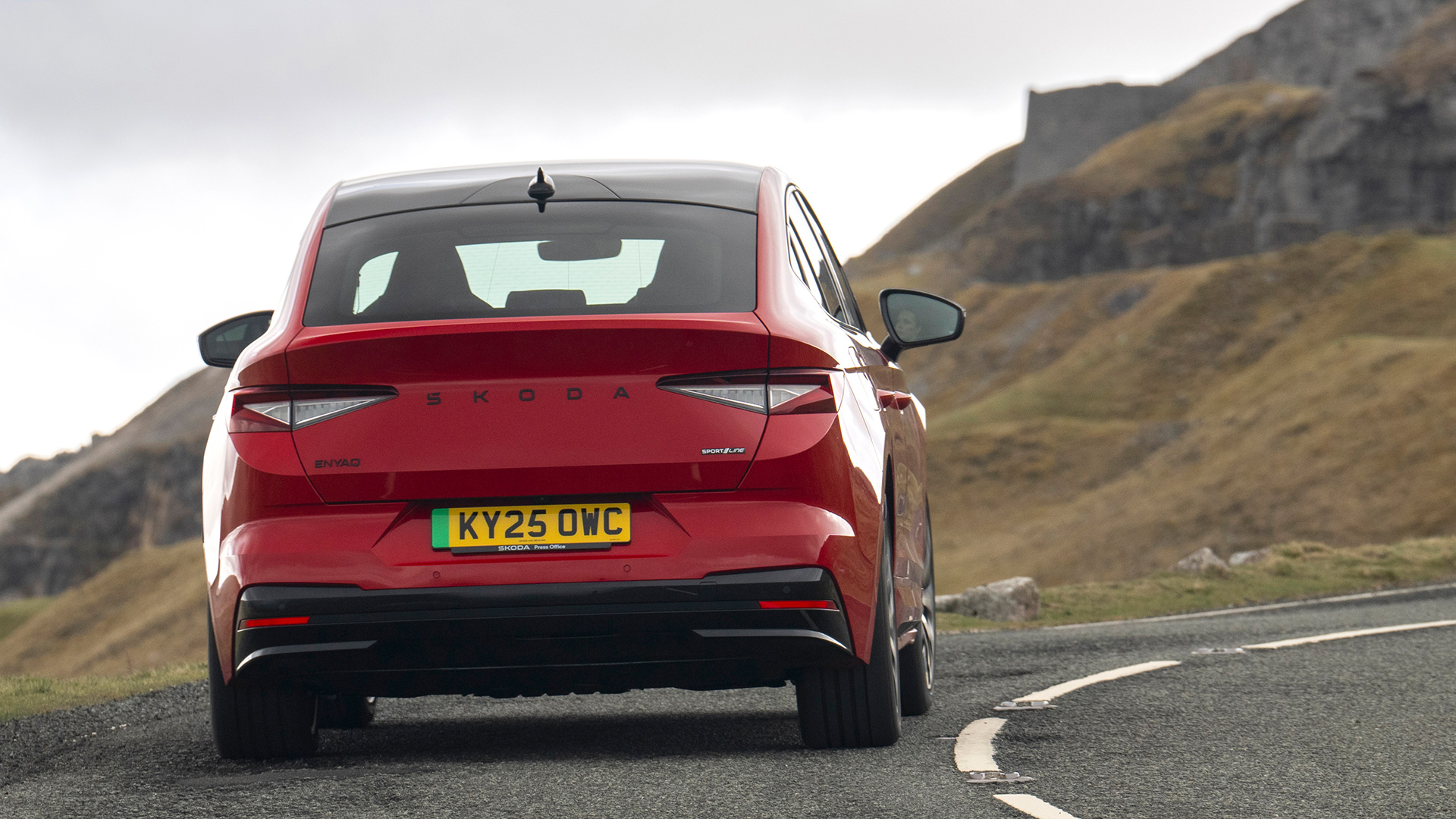 As coupe-SUVs go, the Enyaq is quite a handsome one. Like the rest of the Enyaq range, it was facelifted in 2025 with a distinctive panel aping a traditional grille and flanked by sleek LED lights. But it’s all curves round the back, the stylish high fade to the regular Enyaq’s bowl cut.