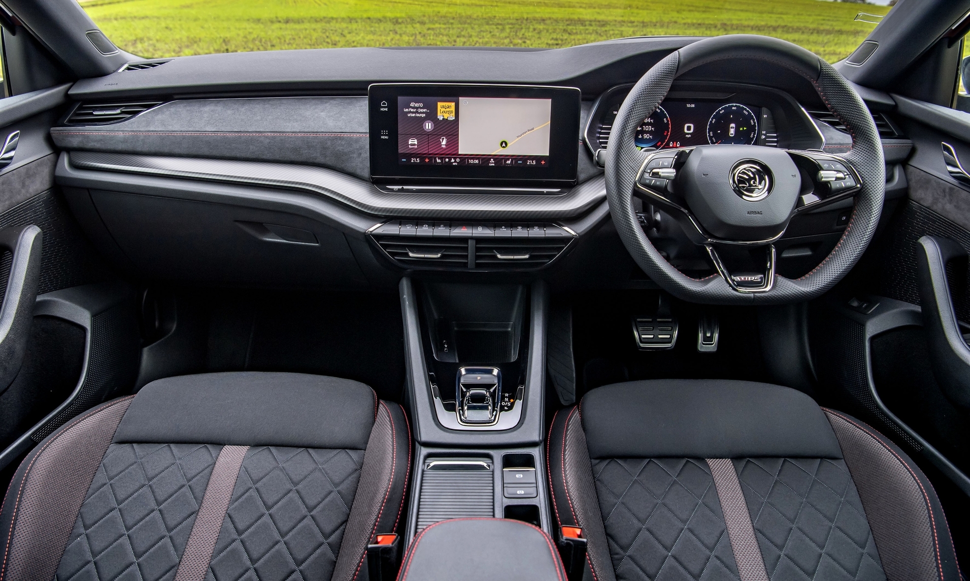 The vRS Estate features a 10-inch screen with built-in sat-nav. It’s the same basic system as in lesser Octavias, so is quite quick to respond and easy to understand. However, with Apple CarPlay and Android Auto being so good, we’d just use that. The graphics on the standard system are a bit dark, so sometimes can be difficult to read, and having the climate controls in the screen system is far more awkward than just having a few more buttons.