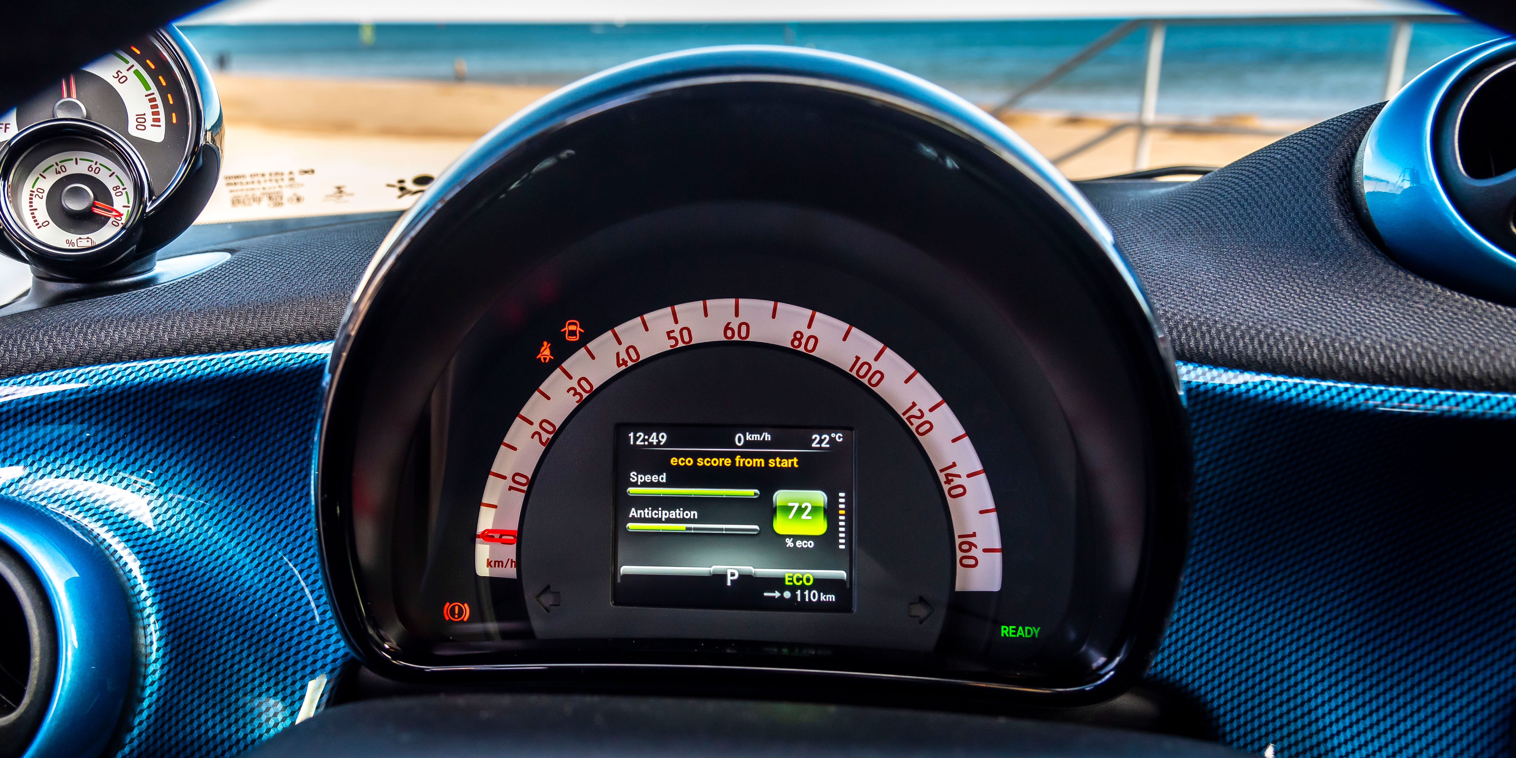 Inside the Smart EQ forfour’s dashboard has a funky design that changes slightly depending on which model you buy. Most of the plastics higher up are of decent quality, but some of those lower down and the Smart’s switches feel cheap.