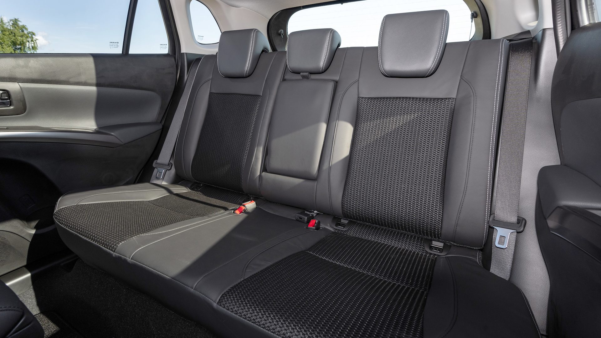 The S-Cross’ front seats are pretty basic. They adjust in the usual three dimensions, including seat height, but you don’t get adjustable lumbar support or electric adjustment with memory like you do on other top-spec compact SUVs. That means they’re unlikely to be very comfortable for all drivers, though we found them just fine.