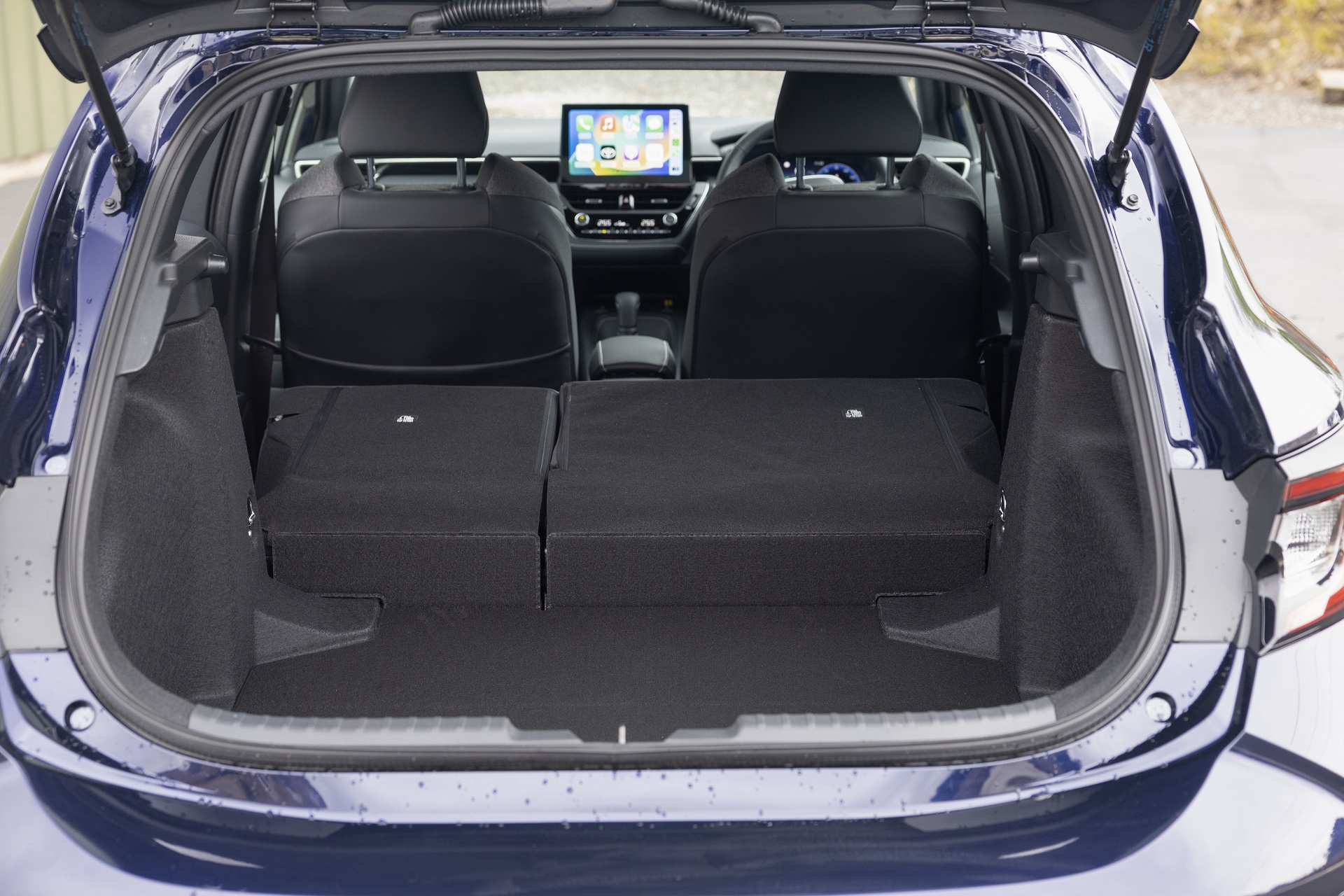 The load-lip issues can be solved by specifying a space wheel, which then raises the floor so it is in line with the boot’s opening – without it, you get a huge ridge in the floor with the back seats folded away. That’s a shame because in this format the Corolla can carry an adult bike with both its wheels attached or a surprising number of boxes.
