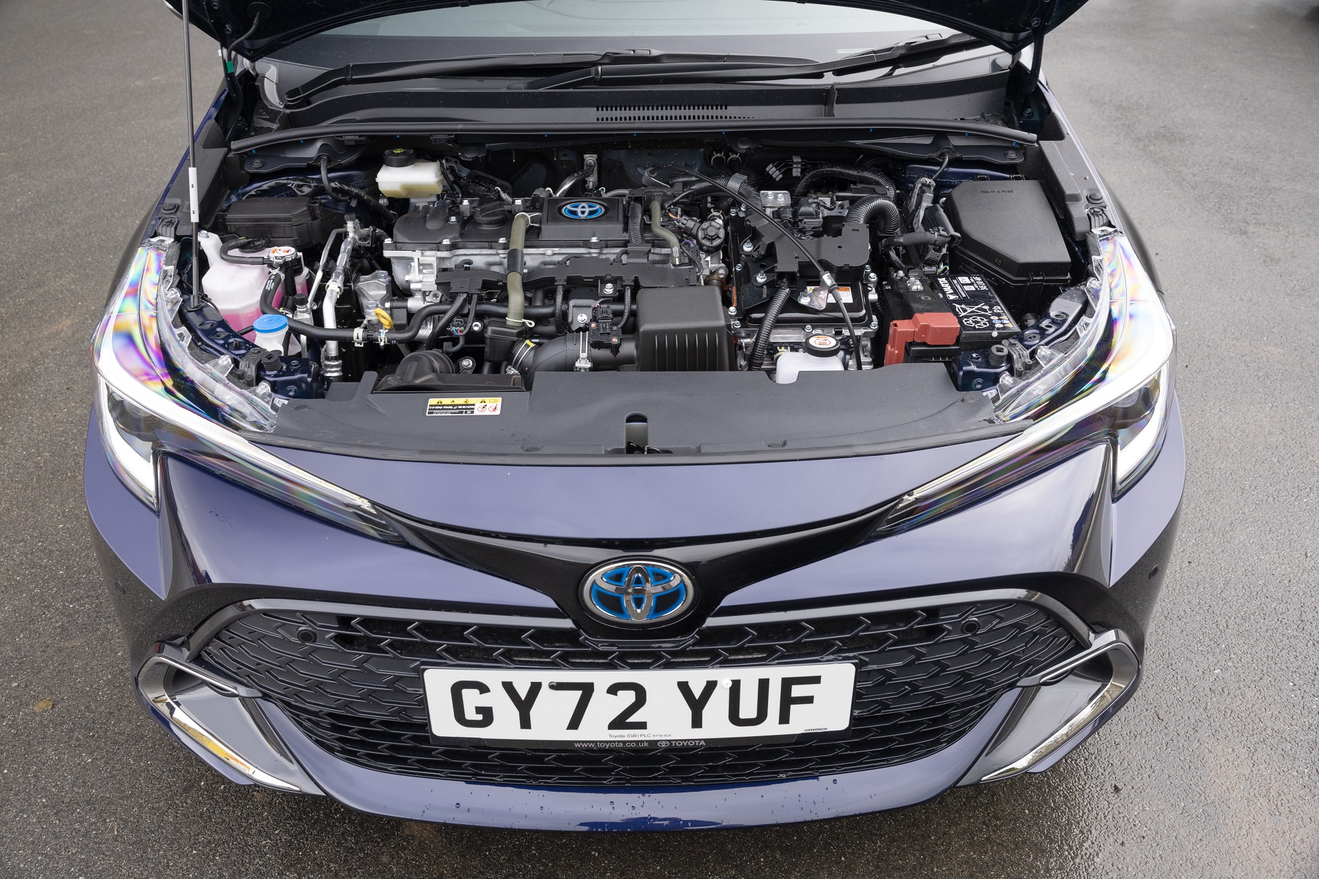 The Toyota Corolla is available with two petrol-electric hybrid engines.The basic motor is a 1.8-litre four-cylinder producing 140 to get you from 0-62mph in 9.1 seconds. It’ll return an official fuel economy figure of more than 64mpg (which we managed to achieve with gentle driving) and CO2 emissions of bang on 100g/km.