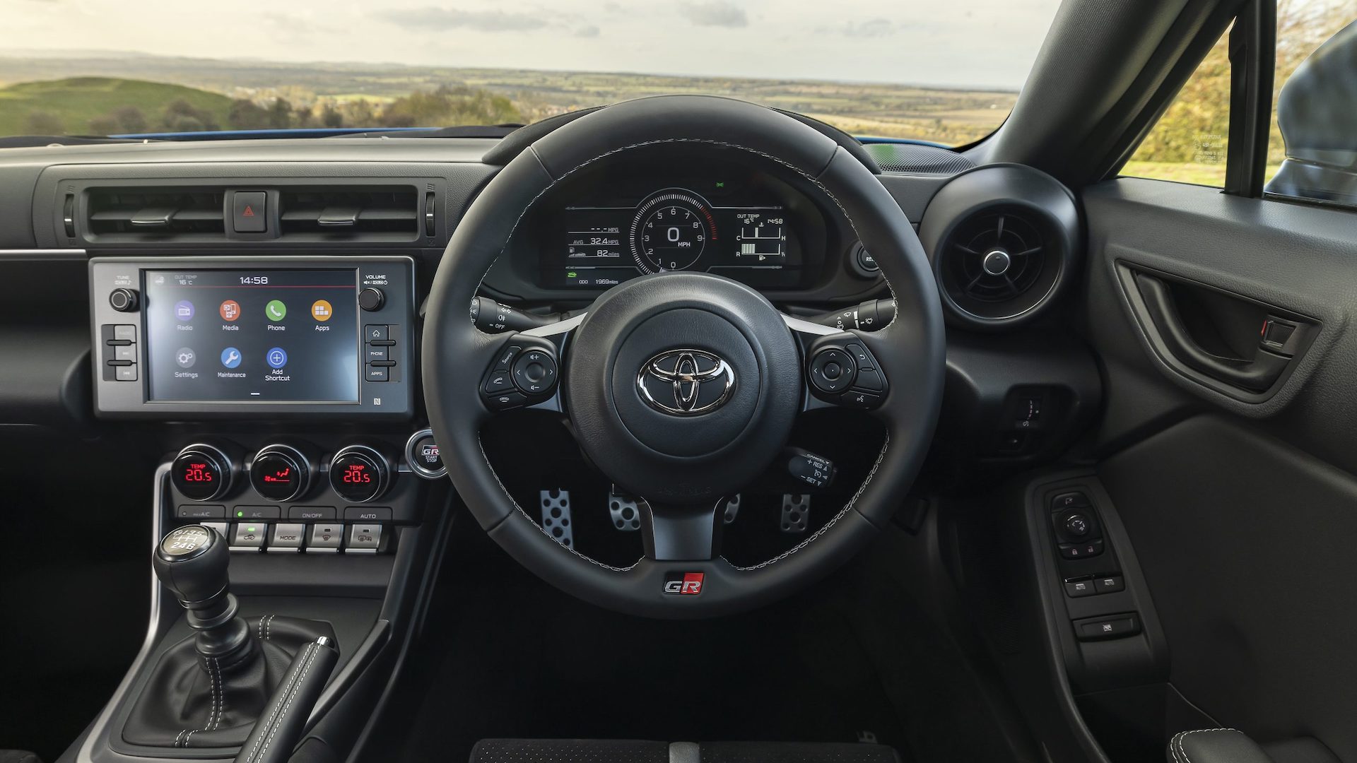 The controls are well-sited though, and the heating and air conditioning system gets nice round knobs and toggle switches, which remind you ever so slightly of those in an Audi TT. Although, the TT’s cabin is way, way nicer than this it must be said. But at least Toyota gives you a proper manual handbrake.