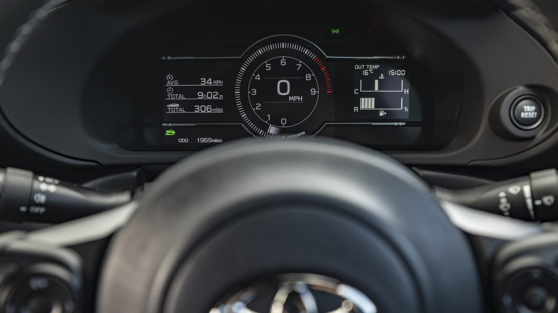 When you fire up the GR86, the GR badge in the main digital dial spins around, while the lights on either side swoosh in and out — just like the pistons in the flat-four ‘Boxer’ engine. It’s a nice, geeky touch. You get some specific performance displays on that digital dash, and when you put it into track mode the whole layout changes to a dedicated sporty display, with the rev counter bigger and in the centre.