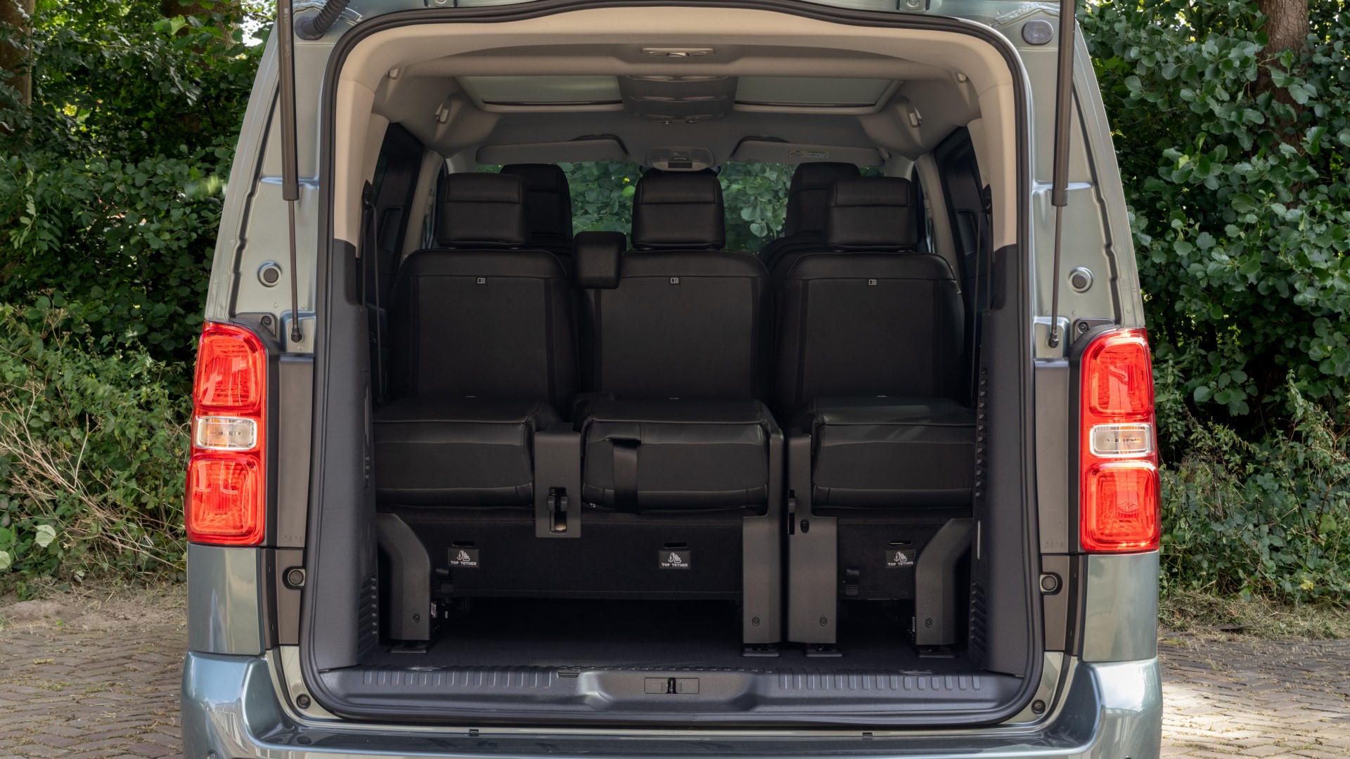 You can choose from two different body lengths for the Toyota Proace Verso — an L1 model which is 4,983mm long, and a stretched L2 version which is 5,333mm long. In the L1 model, which comes in Icon and Design specification, you can fit up to eight people (two in the front, and then two rows of three individual seats) while in the L2 you can squeeze in nine people (three in the front and then three in the two back rows). There’s also a luxurious Excel version which has seats for seven, including comfy individual captain’s chairs in the middle row and a folding table.