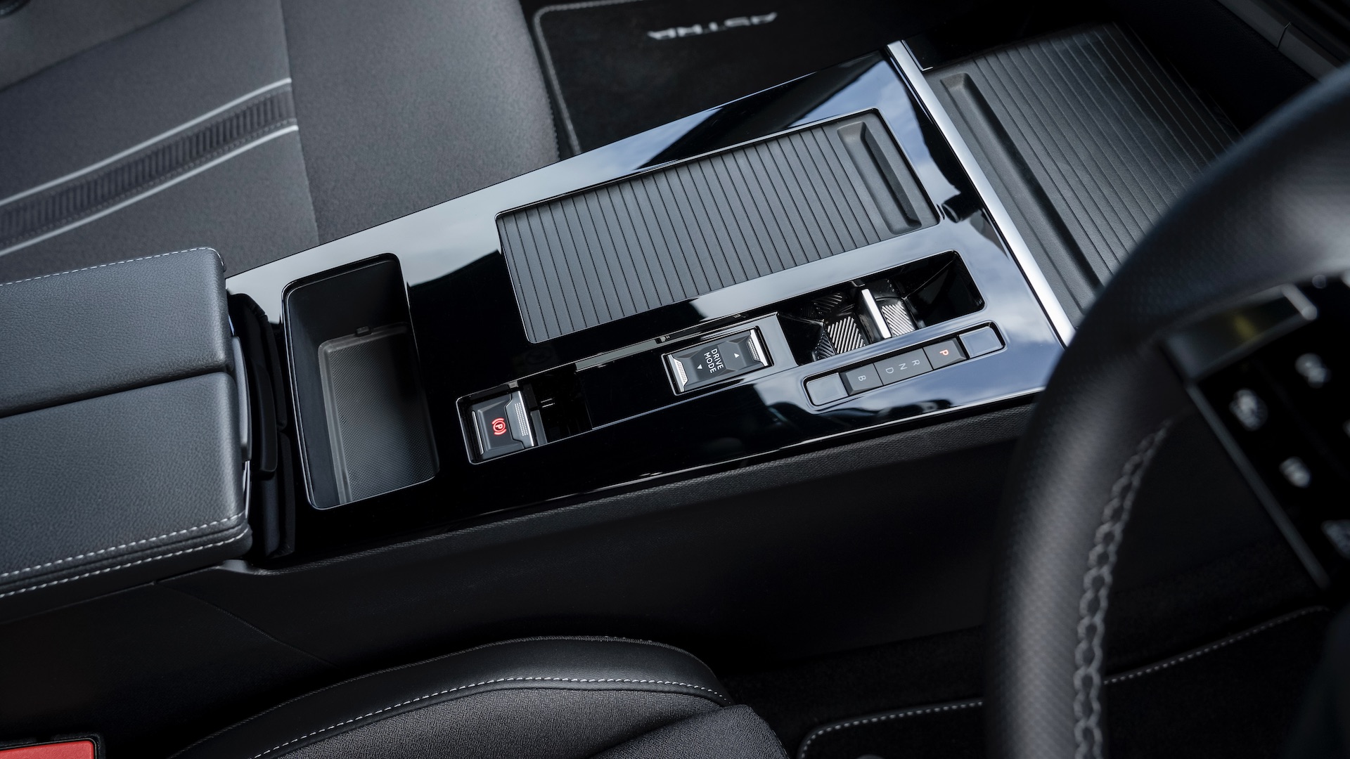 There are a few shortcut buttons for the infotainment, the drive select rocker switch, drive mode selector and your parking brake. But that’s your lot button-wise. It’s very tidy, with lots of straight edges, with the display panel also incorporating the driver’s side air vent that can be a touch fiddly.