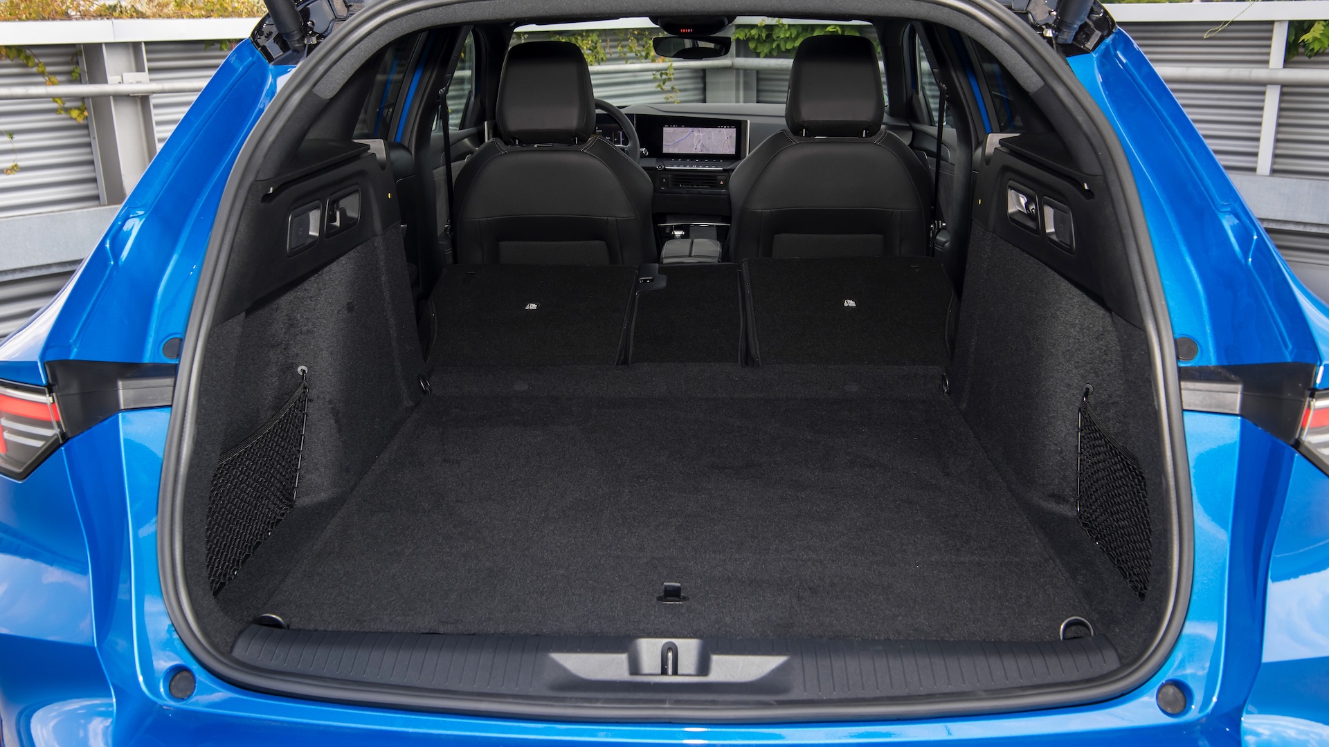 Compared to its alternatives, the Astra Sports Tourer is one of the largest you can get. The 597-litre space is a good shape with nets either side and hooks to hang bags from. There are also pull handles to release the rear seats to fold down. When you do that, you get 1,634 litres, which makes for a flat space that also includes a space under the floor. Picking the plug-in hybrid reduces the overall capacity by 81 litres.