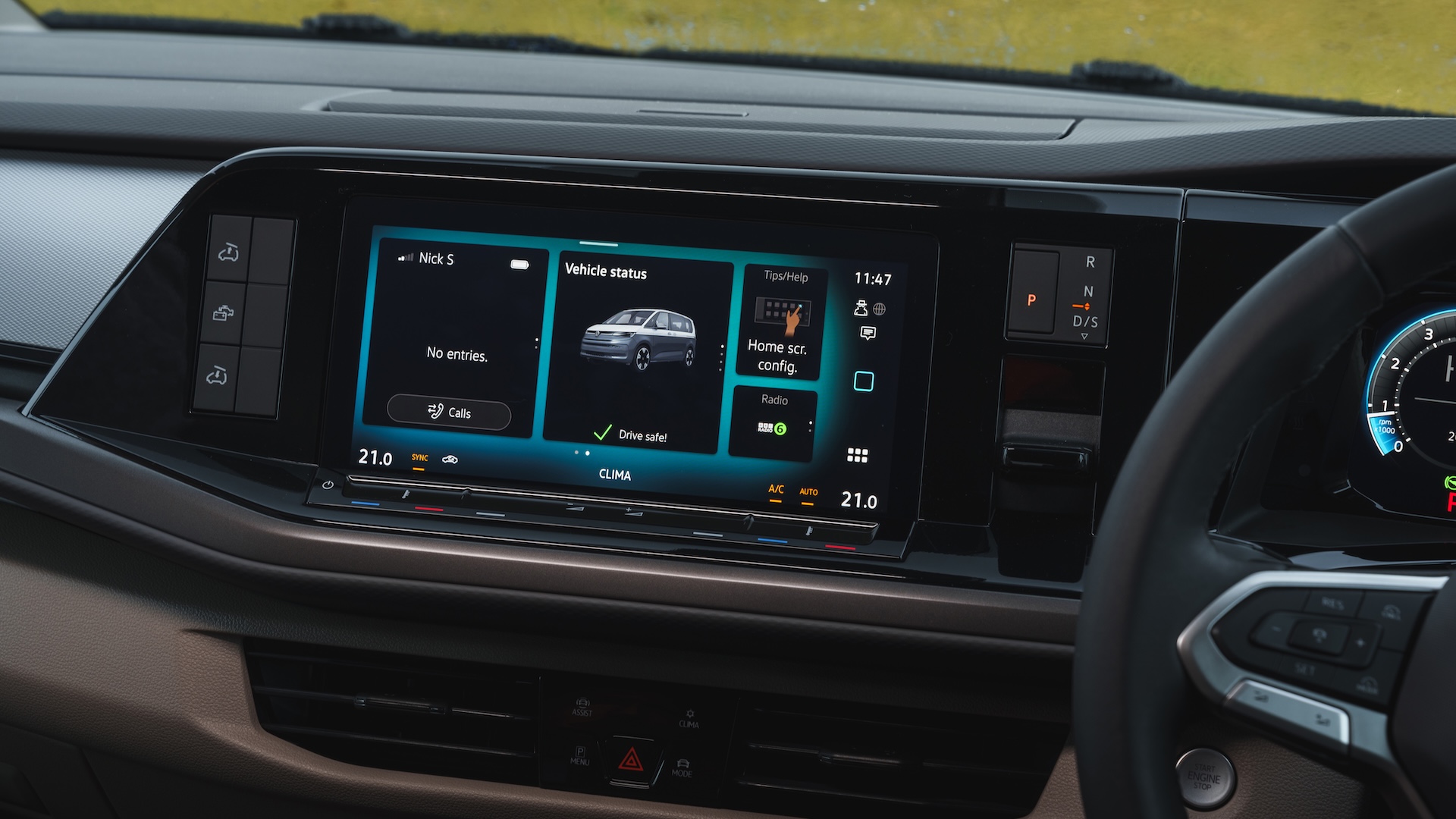 The main infotainment touchscreen suffers from the usual fiddliness that we’ve become used to with VW Group products, but it’s not terrible, and at least there are physical switches for the roof control and for the electric sliding side doors.