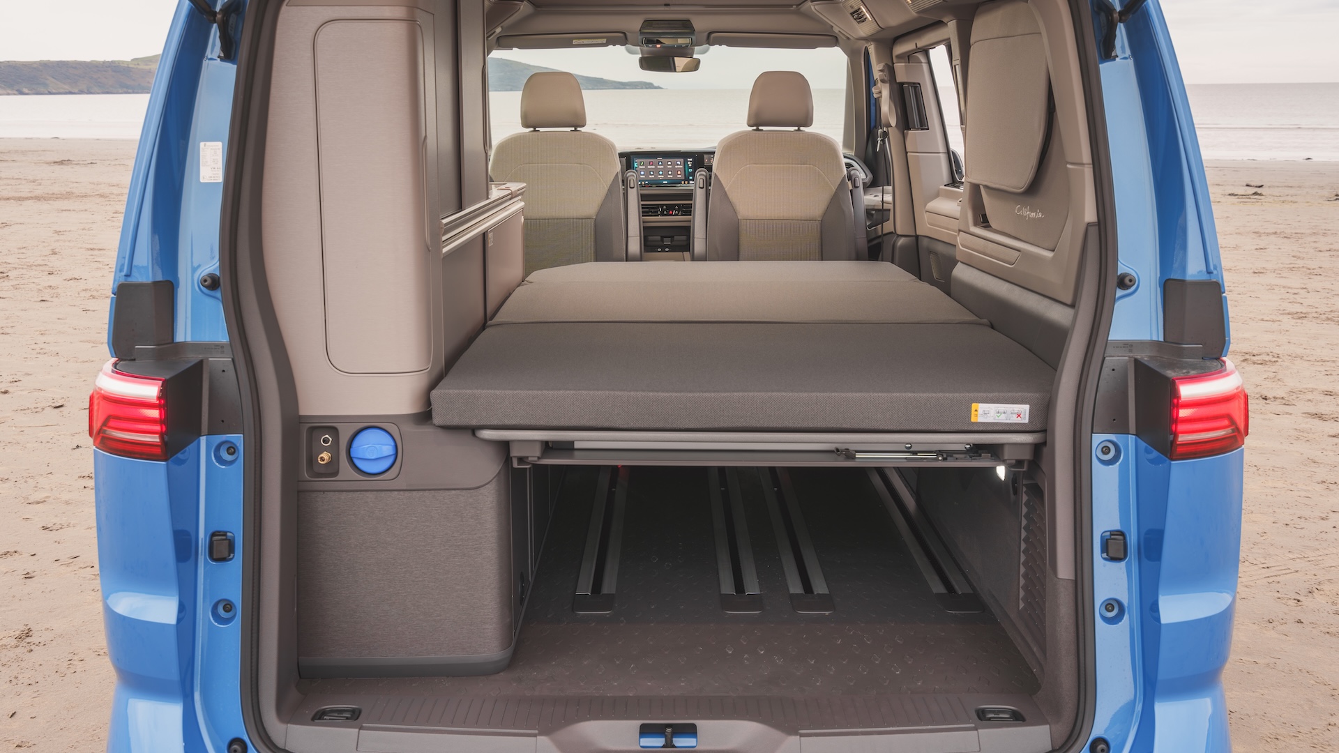 You do get two individual rear seats instead of a big bench seat, and these are comfier and more adjustable than the old bench. They, of course, fold out of the way allowing you to unfurl a double bed for camping, but this is slightly smaller than the old California’s bed, so it’s not great for two adults.