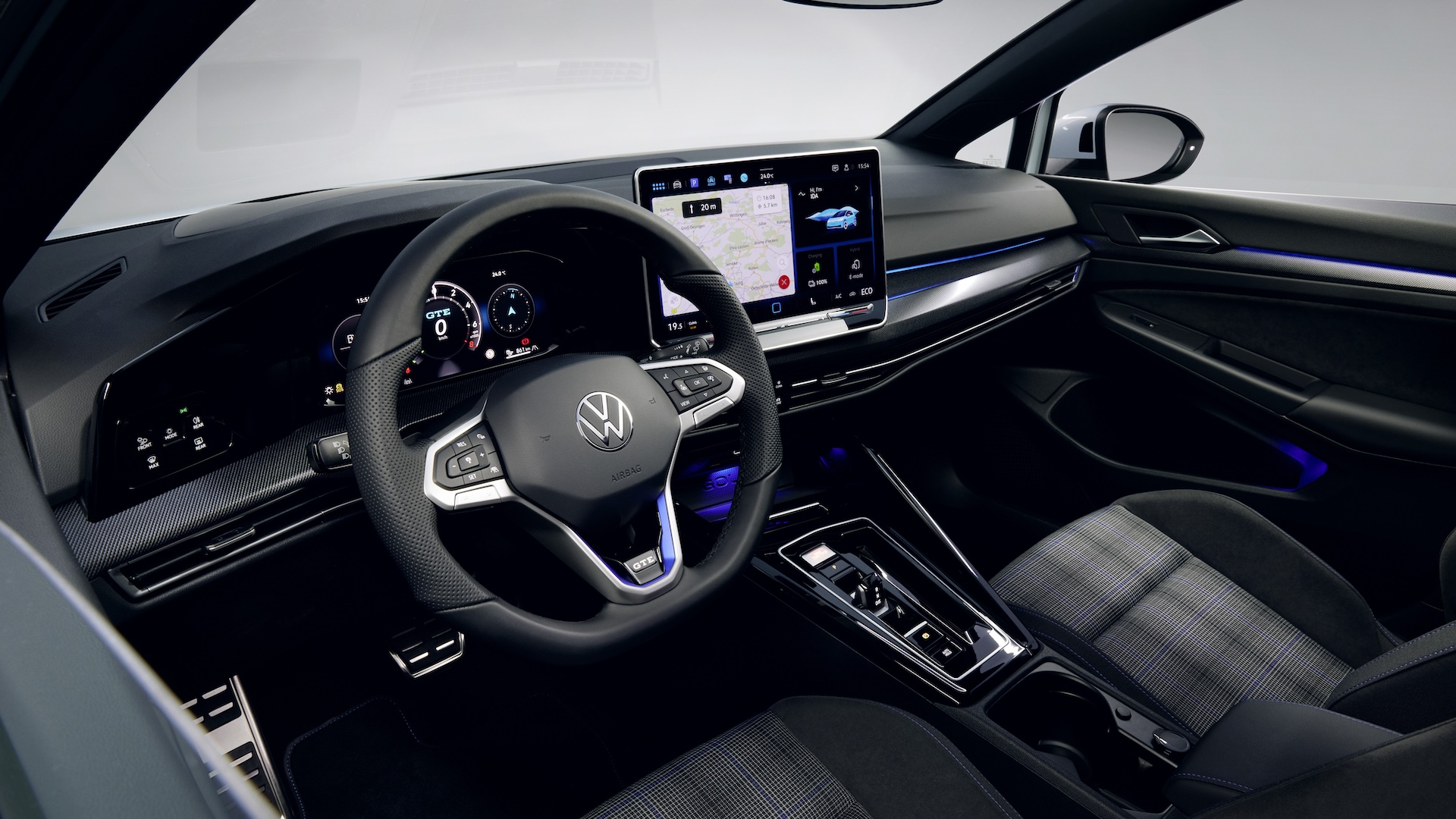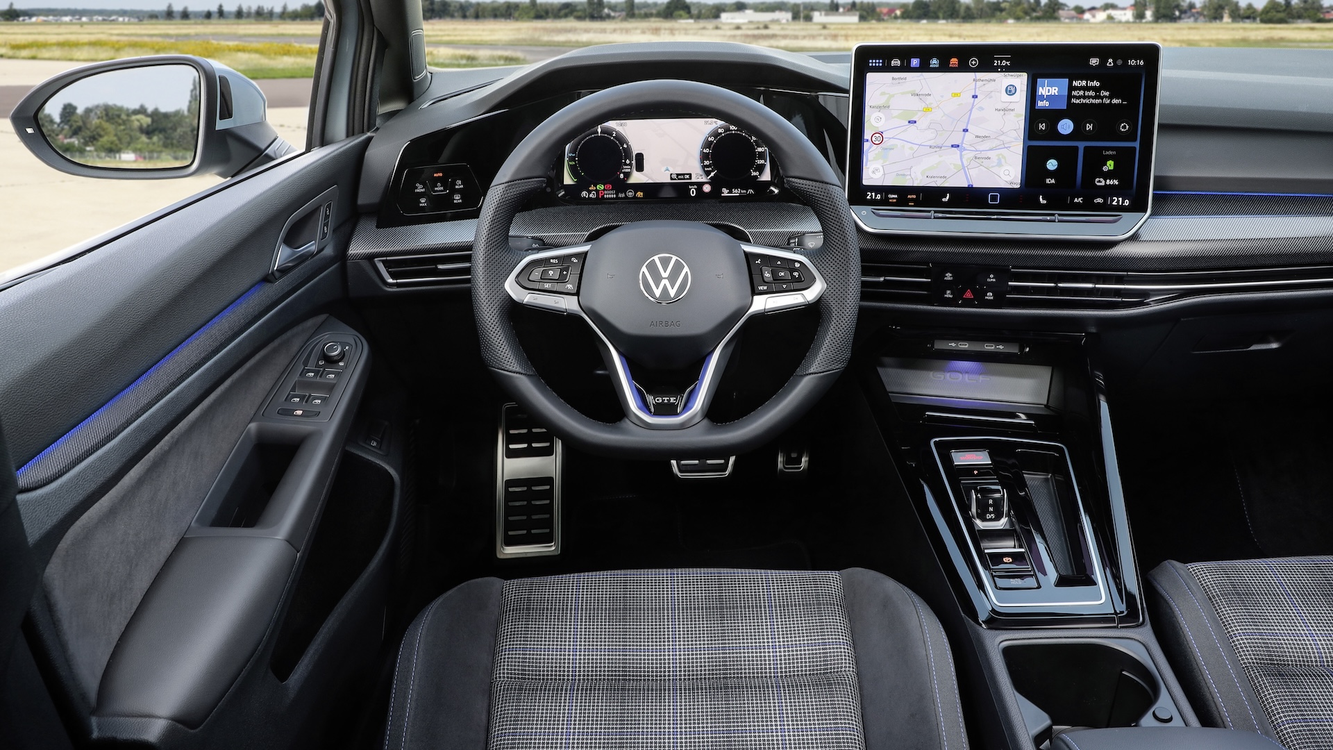 Standard Golf GTE equipment includes 17-inch alloy wheels, a 10.9-inch touchscreen, Matrix LED headlights, keyless entry, lane-keeping steering, and traffic jam assist, which keeps you creeping forward in heavy traffic without you having to worry about braking.