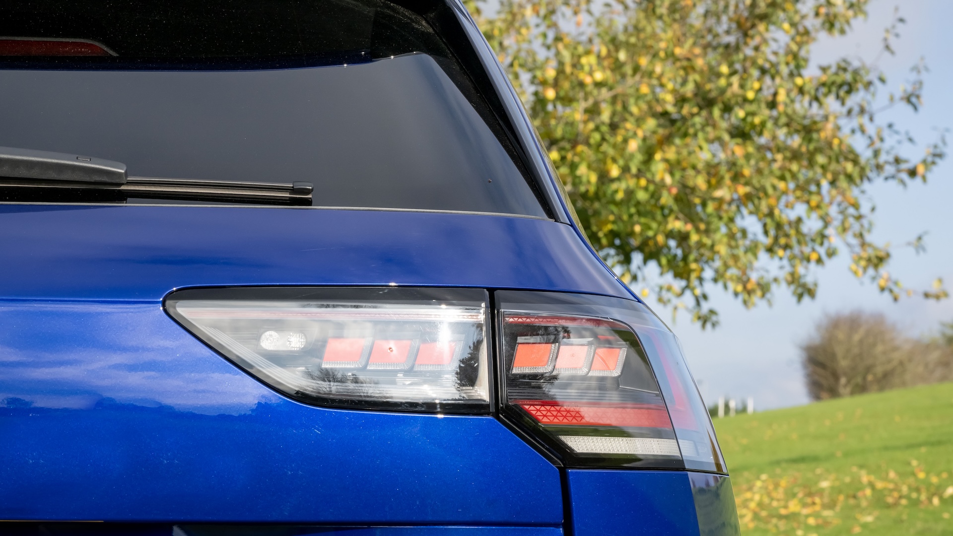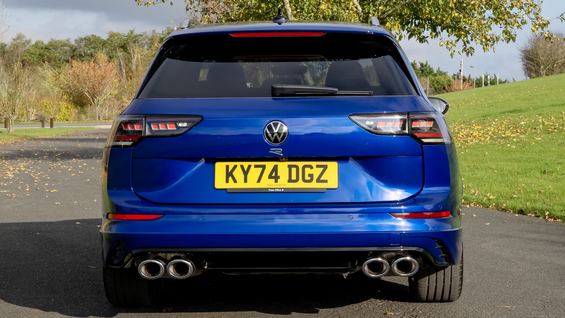 While the Golf R Estate is, of course, a bit longer than the Golf hatch, the two cars basically look the same, with the same standard 18-inch alloy wheels, the same quad exhausts, the same optional Lapiz Blue paint, and the new LED light strip at the front which also now illuminates the Volkswagen badge.