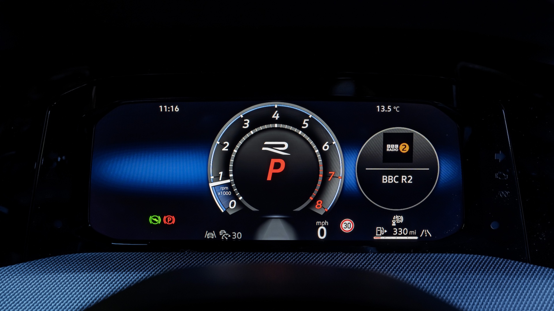 The digital dials are OK, with clear graphics and R-specific layouts, but it does all look a bit ‘cartoony’ and slightly cheap at times.