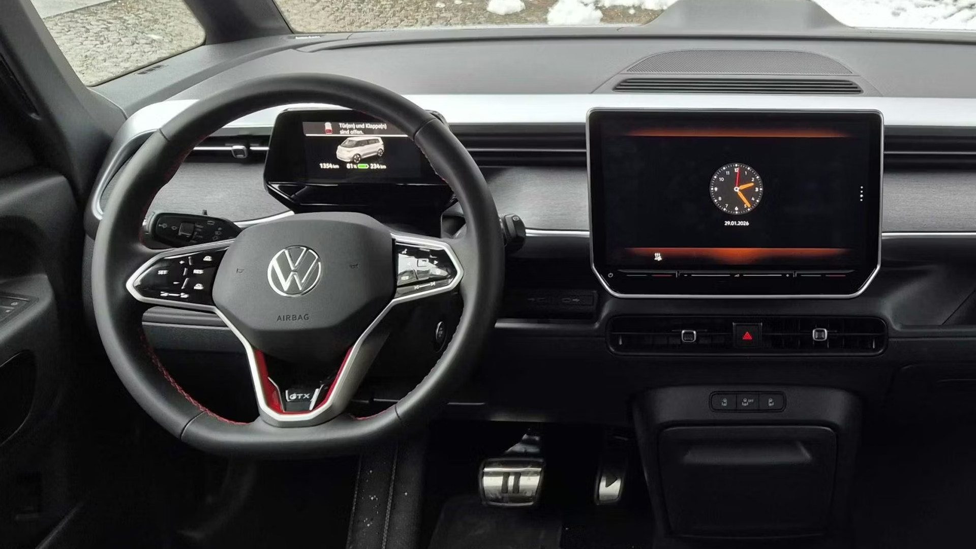 The standard ID Buzz has a really cool-looking interior, and it remains pretty much unchanged for the GTX. You do get some slightly sportier seats, but it’s a shame that you can’t get the light trim option. This really brightens up the cabin on the standard car.