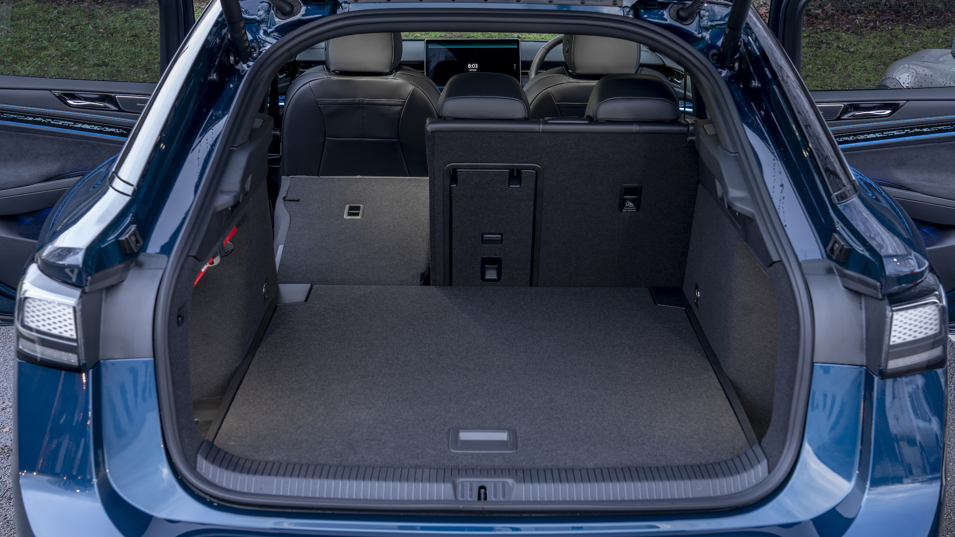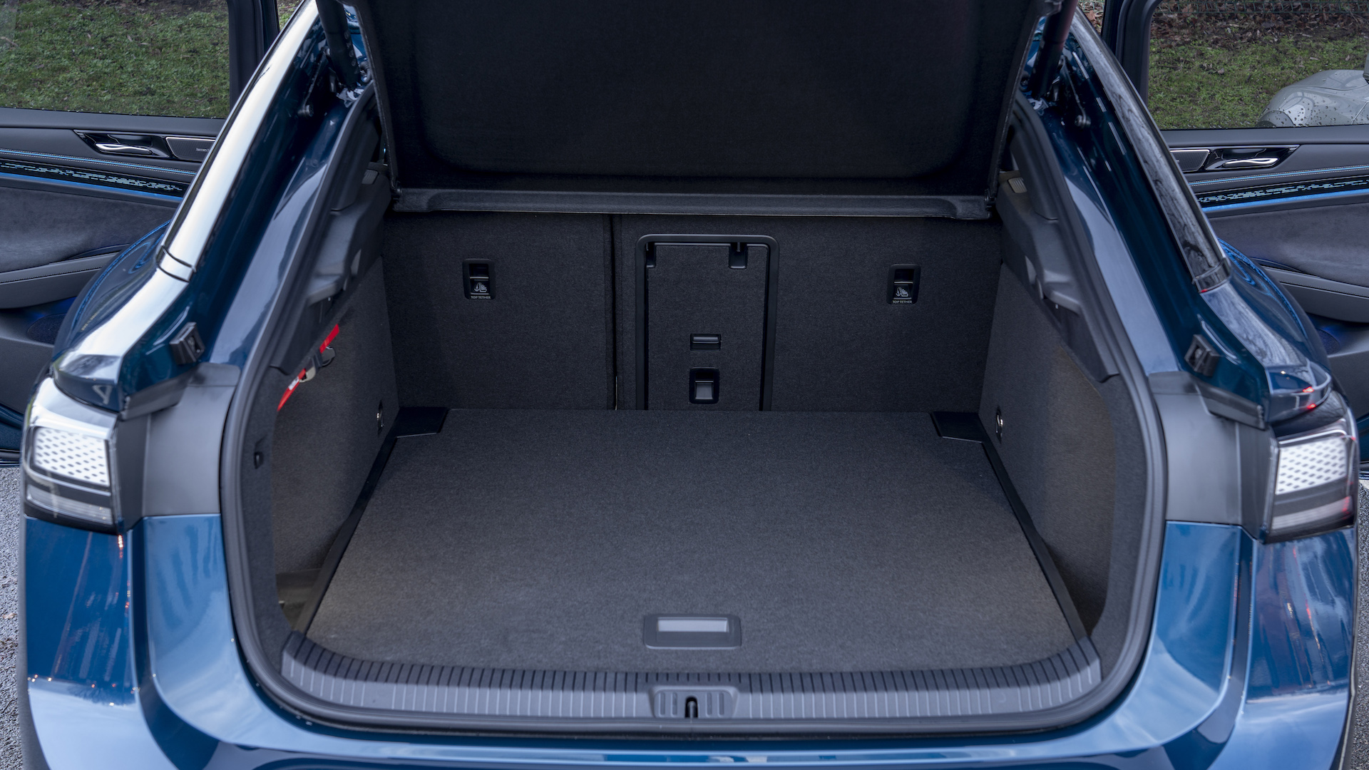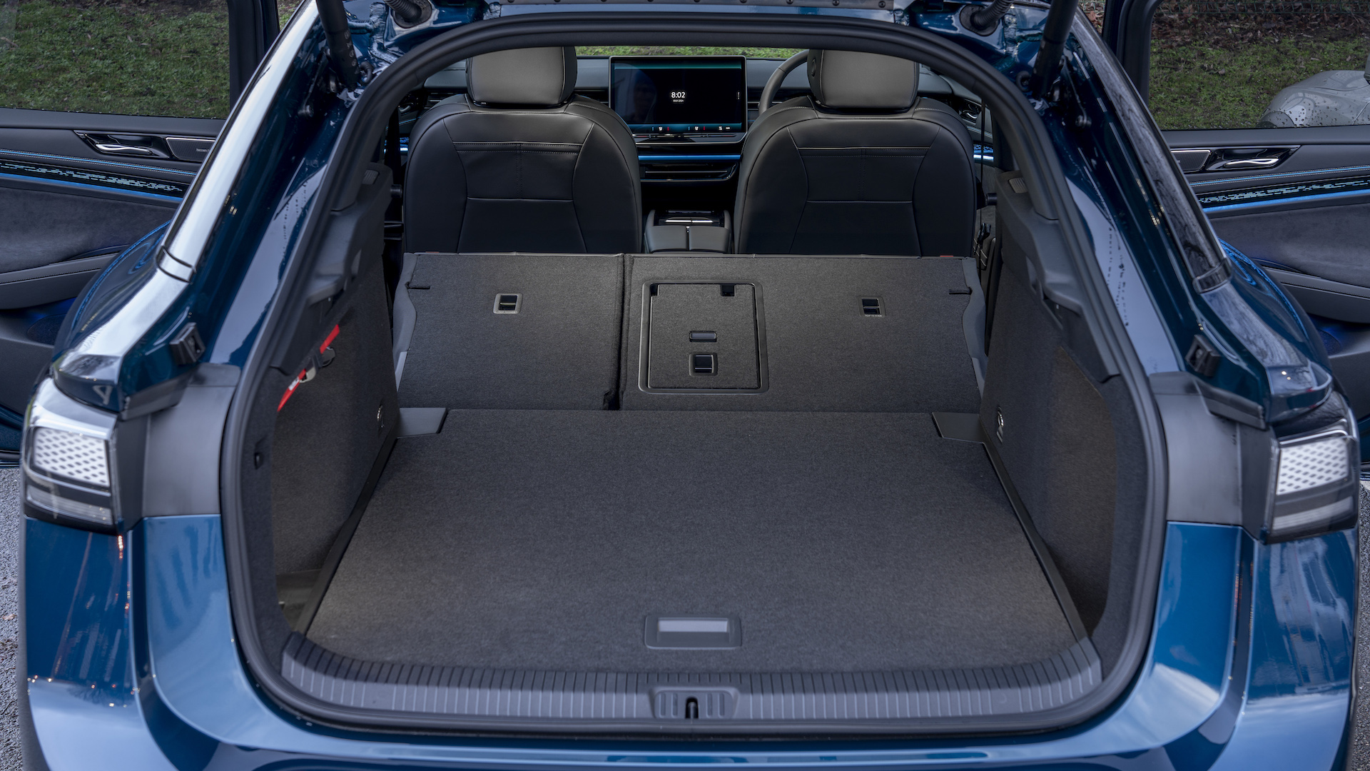 Boot capacity is a generous 532 litres with the rear seats in place. That’s bigger than a Kia EV6 (490 litres) or a Tesla Model 3 (425 litres). Plus, unlike the Tesla, the ID7 has a full-height hatchback boot instead of a narrow saloon opening, making it much easier to load bulky items in. Fold the rear seats down and there’s a 1,586-litre space.