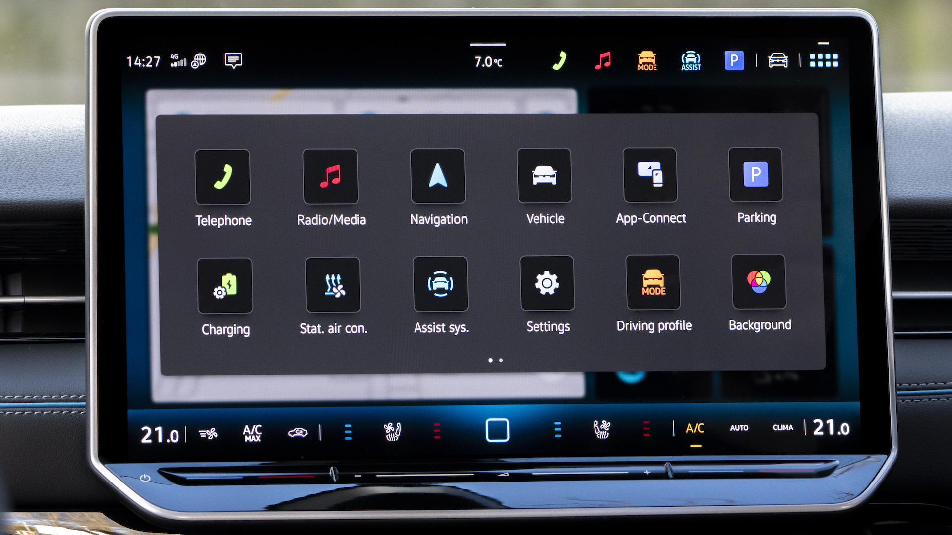 It uses a 15.0-inch screen, mounted high up on the dash. Underneath are some touch-sensitive buttons, which are now backlit so you can see what you’re doing at night. The software now operates a lot like a smartphone - there’s a configurable homepage with various widgets, and two rows of shortcut keys that can be swapped out to give you quicker access to the functions you most want to use.