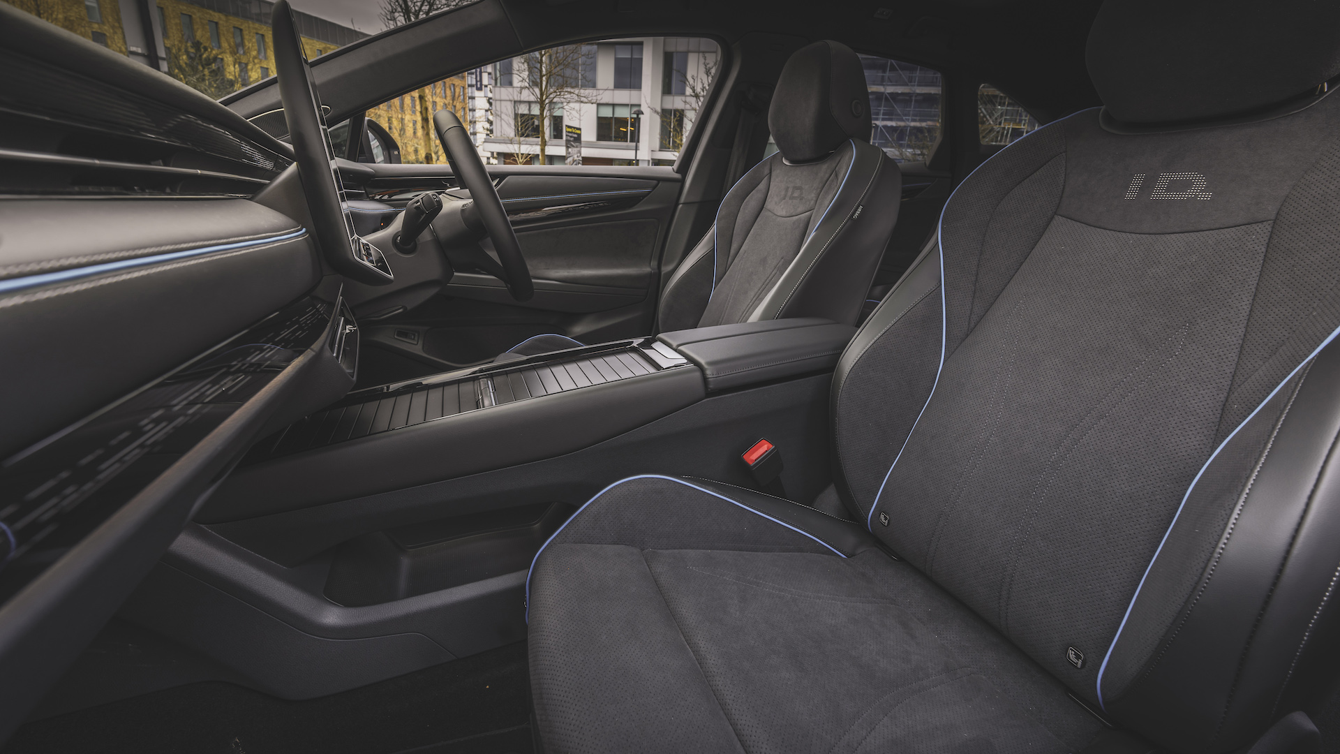 It copes well with speed bumps, potholes and pockmarked surfaces, though it’s not as soft as a Nissan Ariya. And as the ID7 is a saloon car, rather than an SUV, you don’t get the high-set driving position and imperious view out over other traffic.