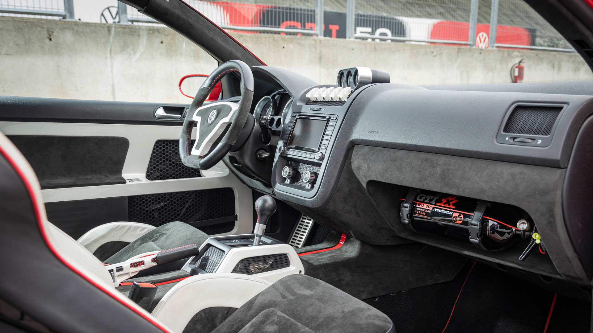 I was hugely excited to get to see the W12-650 in the metal. Ever since I watched the feature on Top Gear back in 2007 with this car, I’ve been obsessed with it. The car has been wrapped red for the launch of the Golf GTI 50, but I reckon it looked way better in its original white paint. Despite this, the attention to detail is still fantastic.