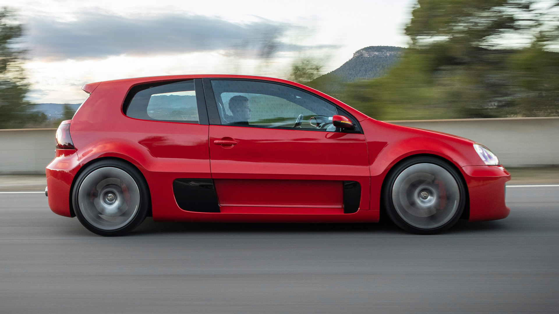 The body was also widened by 6.3 inches to make way for both the side-mounted air intakes and the massive tyres, and the W12-650 also sits almost 3.0 inches lower to the ground than the standard Golf GTI.