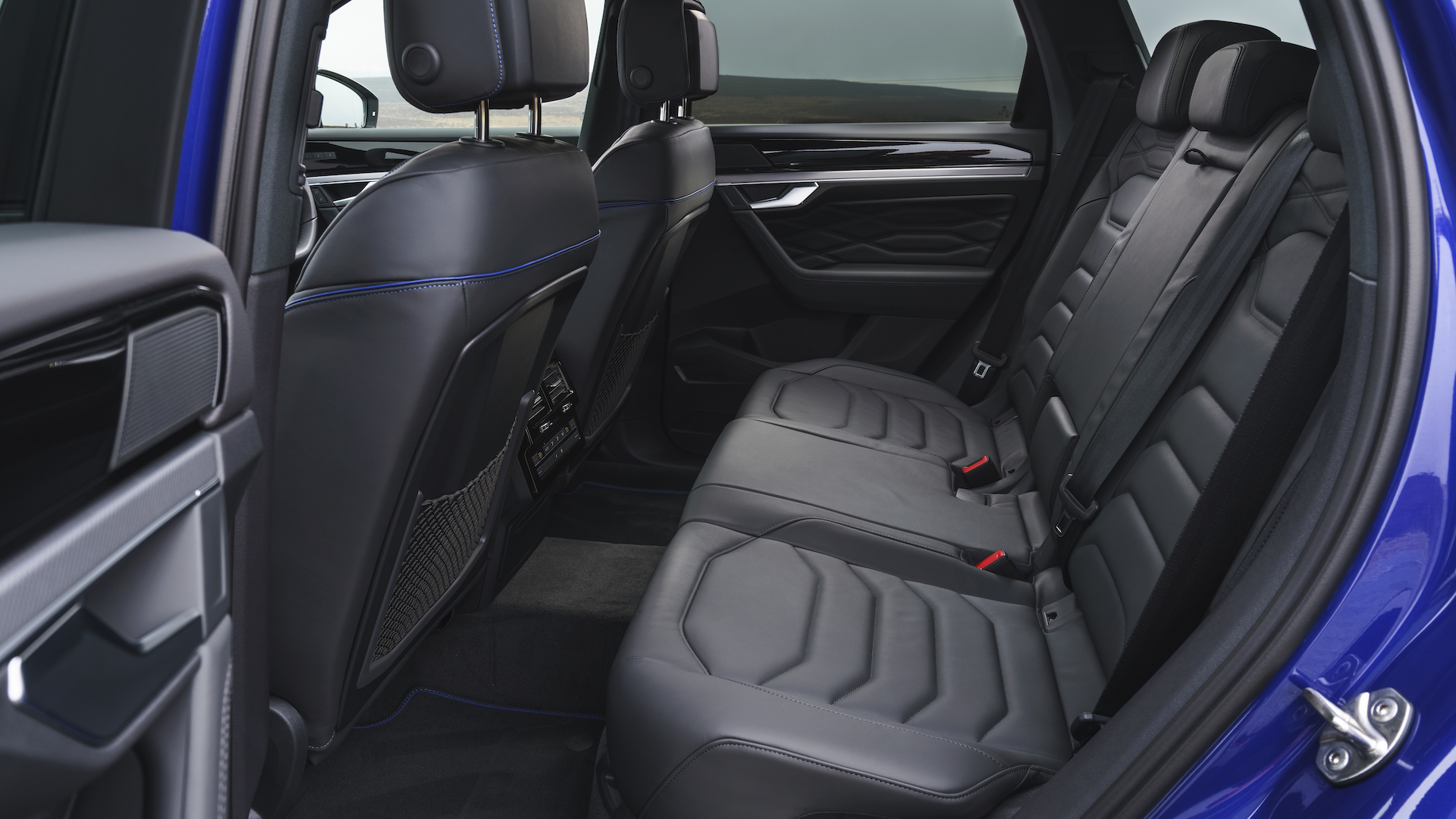 The Touareg R’s plug-in hybrid engine produces a beefy 462hp, good for the benchmark 0-62mph sprint in 5.1 seconds. That’s just 0.4 seconds behind what the Golf R can manage, making it highly impressive for such a large SUV.