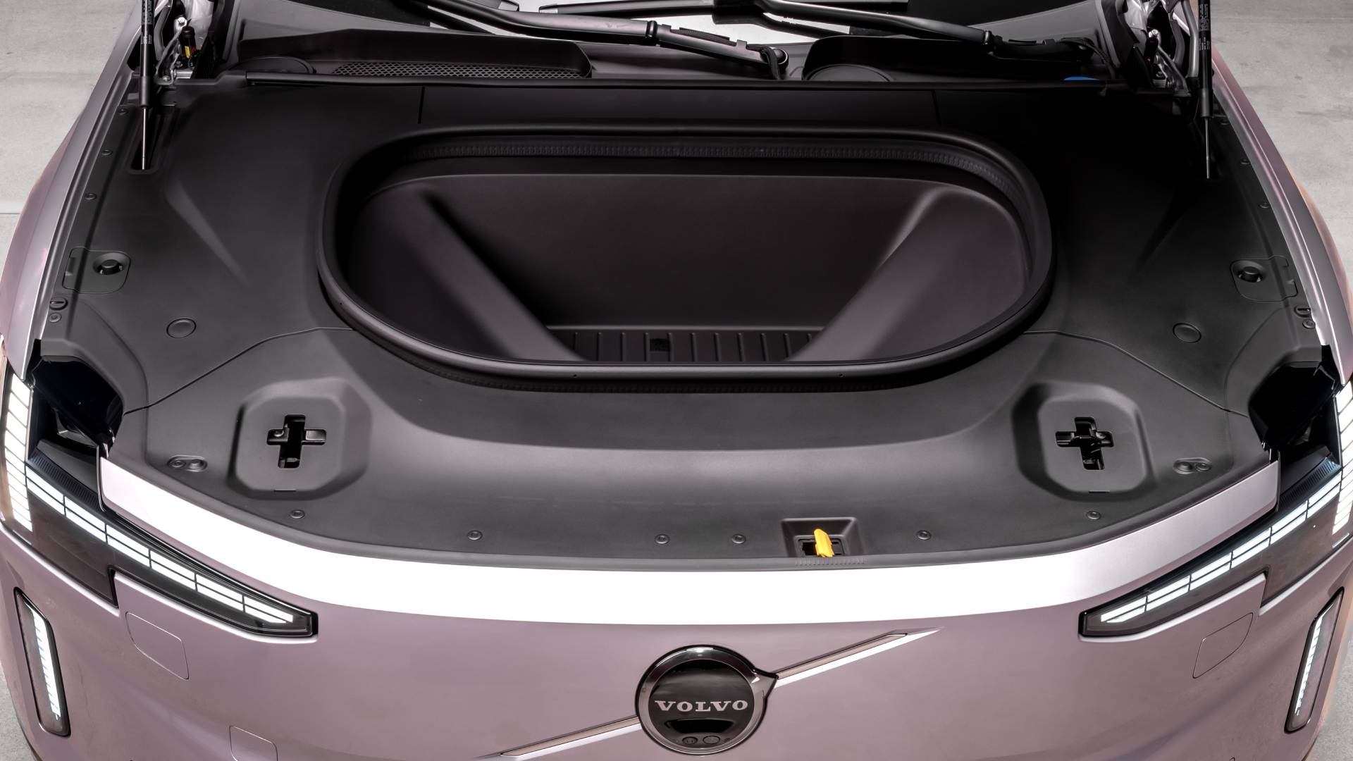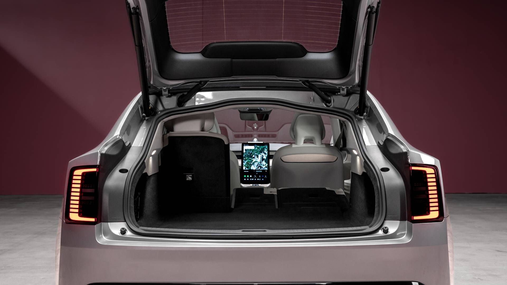 At the back, the ES90 isn’t a saloon at all, but instead has a vast liftback hatch, which opens to reveal a less-than-vast 424-litre boot, which is pretty disappointing if you were thinking that this was going to be a traditionally practical Volvo. That is at least supplemented by a small ‘froot’ storage area in the nose, but that only holds 22 litres. The rear seats do split-fold in three sections, so you can set the luggage area up as needed if you have to carry larger items.