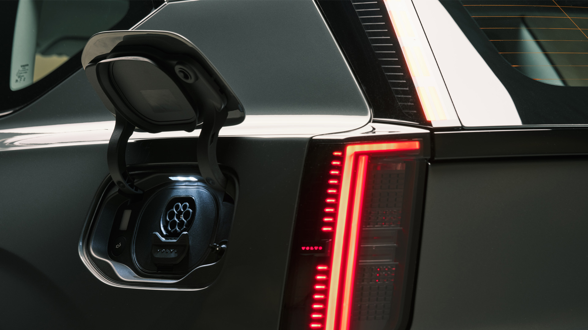 Moving to the rear, the EX60 has a sleek profile, and the rear lights are interesting as well. Volvo has moved away from the C-shaped units found on the EX30 and EX90, opting instead for a modern iteration of the straight-down lamps on the XC90 and older Volvo estate cars with a kink at the bottom.