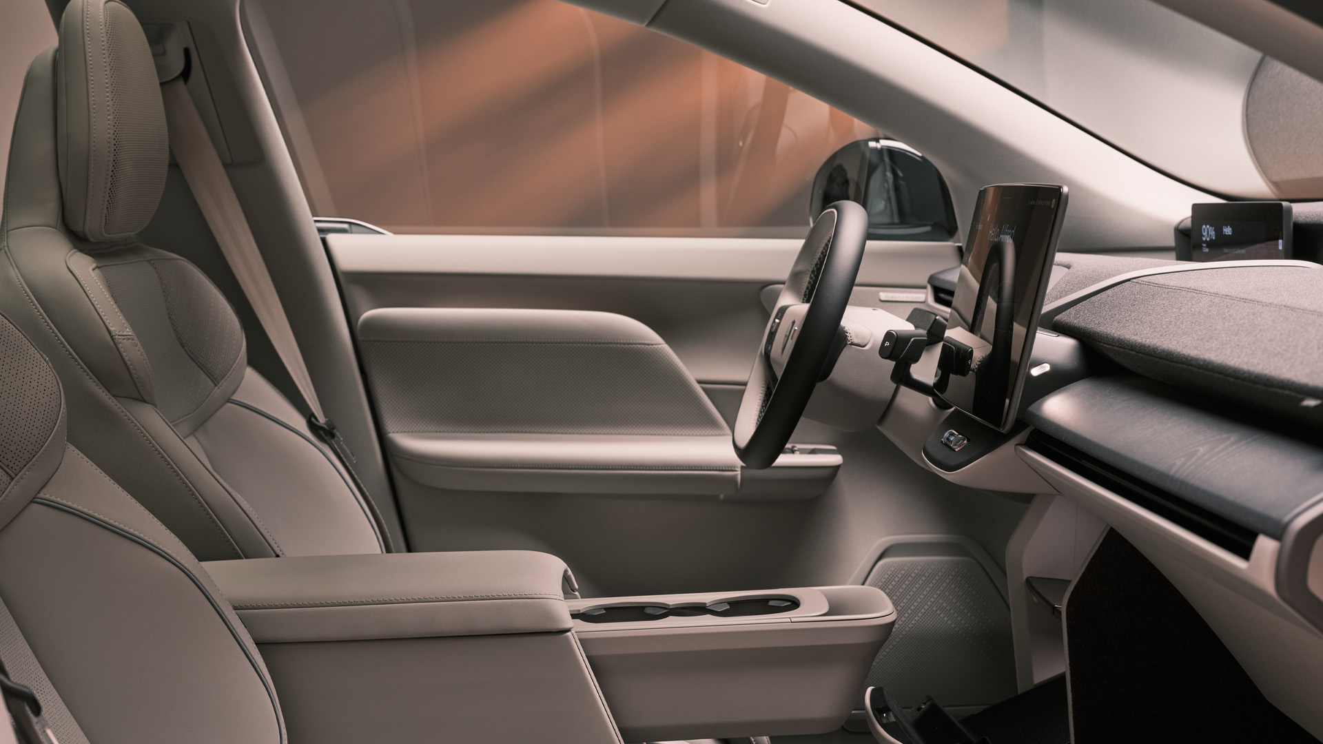 Let’s talk about the screen, because it’s the dominating feature here. It seems as though Volvo is sticking to its guns on the whole “touchscreen everything” vibe with the EX60, although there is a volume knob in the middle. That’s an improvement over the EX30.